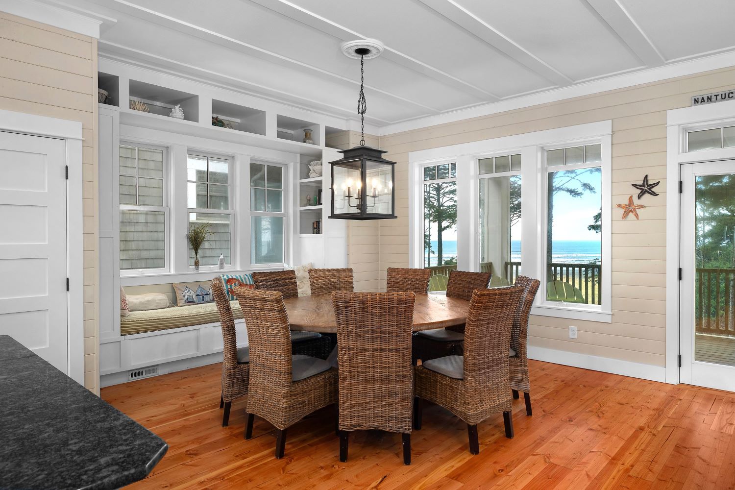 Welcome to Nantucket House, a breathtaking beach home nestled in the tranquil North Glen neighborhood, offering over 2,600 sq ft of luxurious living space. The main house features 4 spacious bedrooms, including a convenient main-floor bedroom, and 3.75 elegantly appointed bathrooms. Enjoy a chef’s kitchen with double ovens, a cozy gas fireplace, and a dedicated media room. Step outside onto the covered porch to take in sweeping ocean views. Upstairs, two private balconies off the primary and guest bedrooms provide peaceful oceanfront escapes. In addition to the main home the 624 sq ft carriage house offers a studio-style living area with a kitchenette and bathroom. Fully furnished, this home is the perfect blend of comfort and coastal charm.