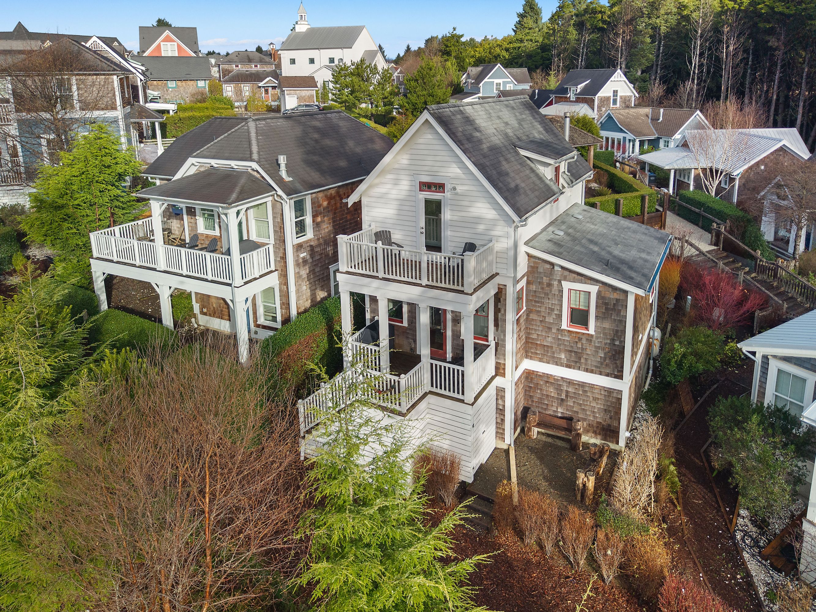 Nestled against East Main’s greenbelt, Thistlewood Cottage is both tranquil and connected. The light filled, open concept main floor makes entertaining a breeze with connectivity from the kitchen and living room. The living space extends to a large, covered porch, perfect for al fresco dining. The first level is made complete by the primary bedroom with an ensuite bathroom. Head upstairs to find a guest bedroom with custom built-in bunks. Across the hall is a third bedroom where a walk-out balcony awaits, perfect for enjoying a quiet evening. The location is highly coveted. It is steps from the bustling Town Center's shops, restaurants, and gathering spots, and a short walk to the ocean beach and and scenic coastal/forest trails.