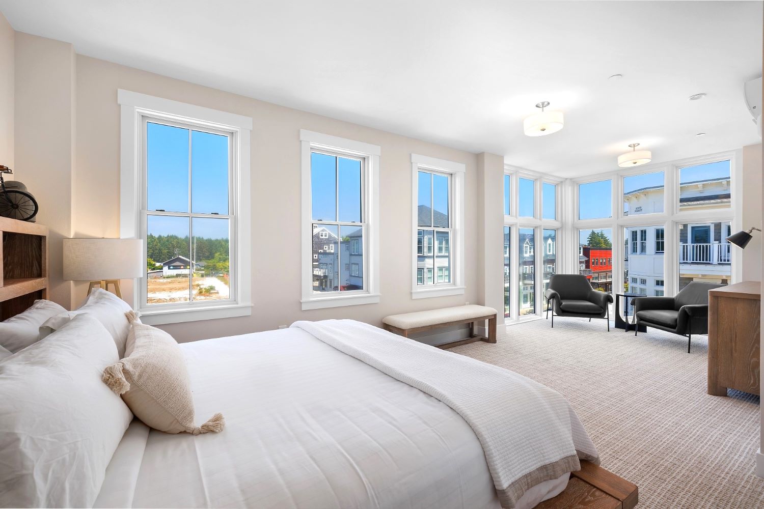 Experience the best of coastal and urban living at Pacific Landing, ideally situated in Seabrook’s vibrant Town Center. Condo B spans two levels and features an open concept living area leading out to a private balcony, perfect for taking in ocean views and the lively energy of the Town Center. Upstairs, the spacious primary suite offers a comfortable sitting area and en-suite bath, while two additional bedrooms and a shared bath complete the space.