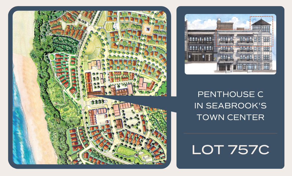 Welcome to Penthouse C in The Sunset District's Starboard building, where luxury coastal living is perfectly represented by sweeping ocean views, expansive living spaces, and the energy of Seabrook’s Town Center. Thoughtfully designed for both relaxation and entertaining, the open-concept living area flows effortlessly onto a west-facing balcony ideal for watching sunsets over the waves. A spiral staircase leads to a private mezzanine offering breathtaking 360 degree views of the coastline and the town. Three spacious bedrooms with ensuites and individual balconies provide ultimate comfort and privacy. Each penthouse includes access to a shared rooftop deck and two dedicated, covered parking spaces, ensuring convenience and ease year-round. Tucked just steps from Town Center shopping and dining and an easy walk to beach accesses, Penthouse C puts the best of the coast right at your doorstep.