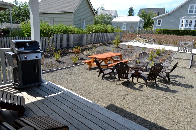 Step outside and discover your private backyard haven, designed for maximum enjoyment. Fire up the gas BBQ for delicious outdoor meals, gather 'round the crackling private fire pit with a picnic table for s'mores and stories under the stars, or immerse yourself in pure relaxation in the inviting private hot tub. The covered back porch provides a peaceful spot to enjoy the afternoon sun or listen to the distant sound of the waves. The covered front porch offers a lovely place for morning coffee, often with the joyful sight of kids biking Seabrook's favorite hill!
