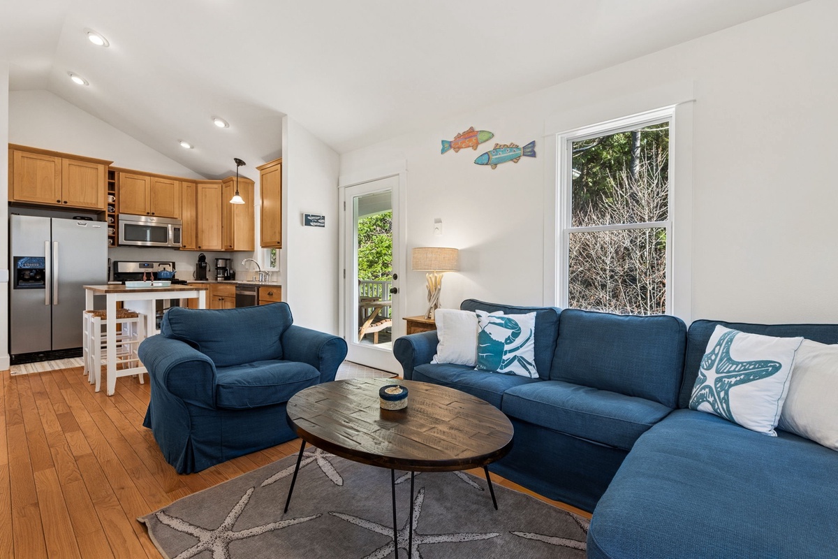 This bright and cozy cottage is conveniently located in the Madison Lane neighborhood, just steps from the Town Center where you can enjoy local shops and restaurants, or pick up groceries at Fresh Foods Market. A brief walk through town leads you down to the beautiful Pacific Ocean and beach, where you can play with your kids and dog, stroll along the shore, build a sunset campfire, or just settle down in the sand and listen to waves and seabirds.