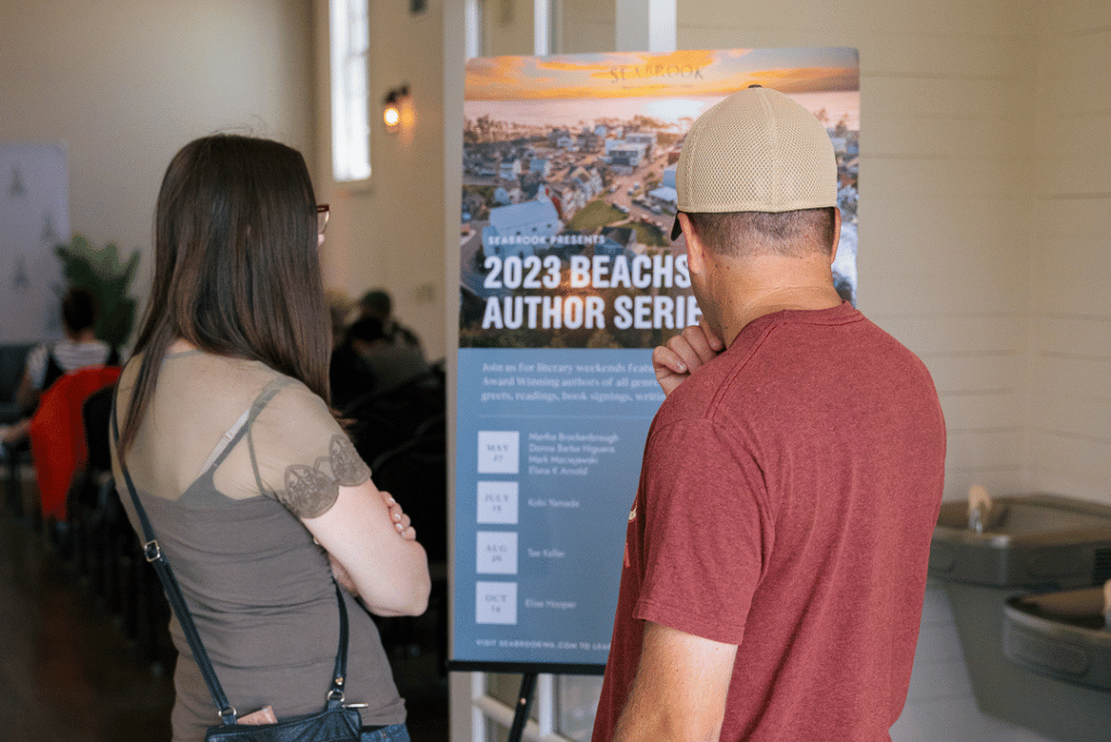 The Beachside Author Series comes to Seabrook as a way to enrich the literary experience and bring people together who share a love for the written word. Readers get the unique opportunity to connect with writers of their favorite books and get firsthand insights as to the writing process, themes, inspiration, and so much more. Seabrook has also partnered with Joie Des Livres, the local bookstore, to bring the joy of books right into each event with a variety of copies available to preorder or purchase at each event.
