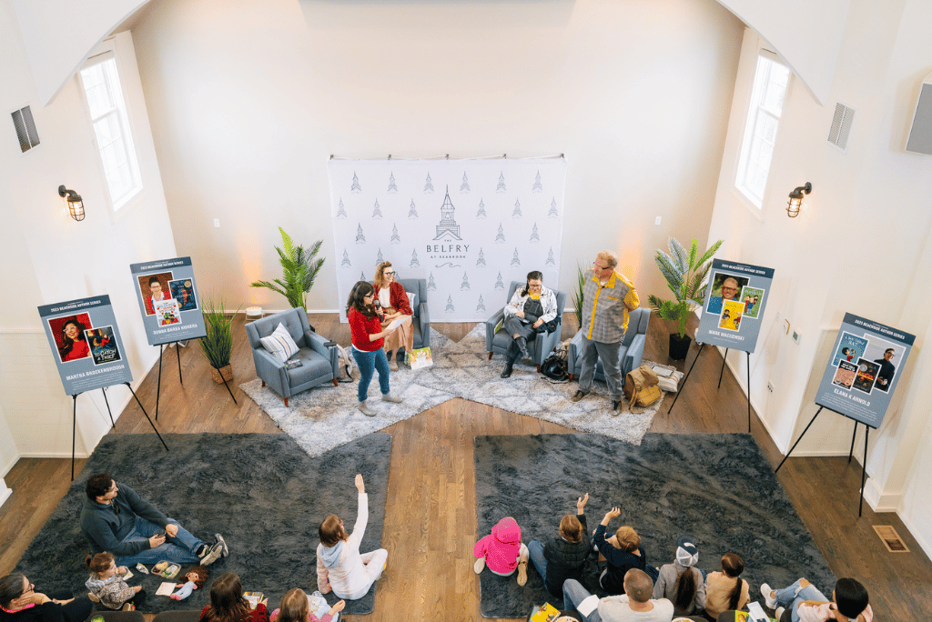 The first author’s weekend was perfect for little readers with four award-winning, beloved children’s authors coming together to share stories, answer questions, and sign books. The afternoon brought beautiful book displays, cozy rugs for kids to sit on, and a laid-back atmosphere that made the event fun and educational to attend. Book-themed food and drinks were provided by The Belfry team.