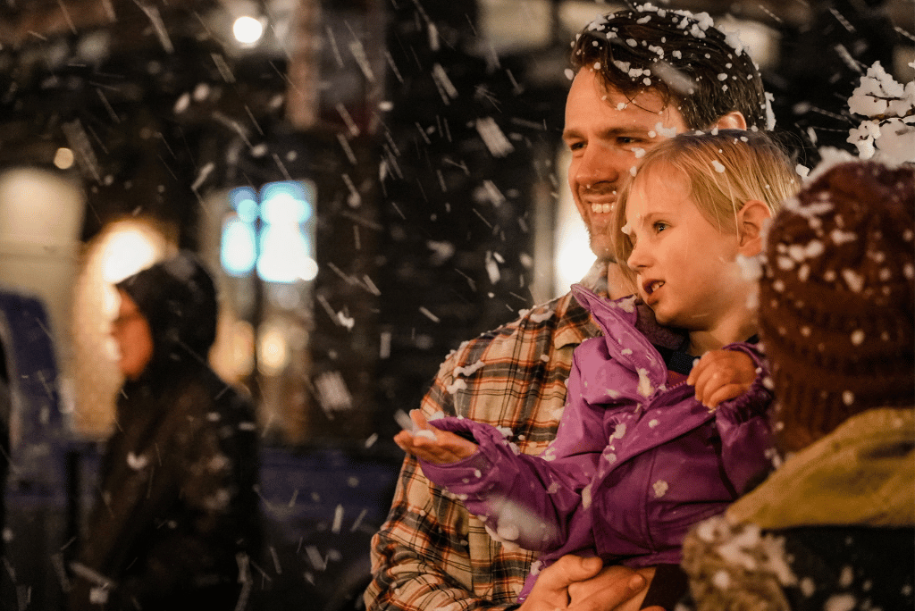 Children running around and laughing during the snows each Saturday of Jolly Days is a highlight not to be missed! Take a walk to the corner of Market Street and Meriweather Street at 5:00 PM on November 25, December 2, and December 9 for the unforgettable snowdrops in the Town Center. Note: The final snowdrop of Jolly Days is during the holiday parade, beginning at 6:00 PM on December 16.