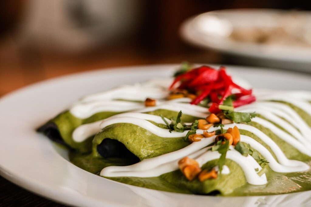 Savor The Flavors Of The Poblano-Cashew Enchiladas With Prawns At Koko’s