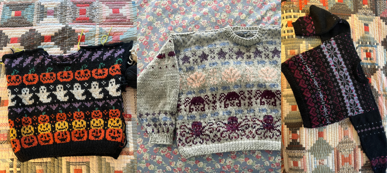 She has always had an interest in creating with fibers since her first babysitter tried to teach her tatting, which didn’t take, but she also taught her crochet and knitting. She preferred crochet until her early thirties, then she switched to knitting as her preferred method of creating.