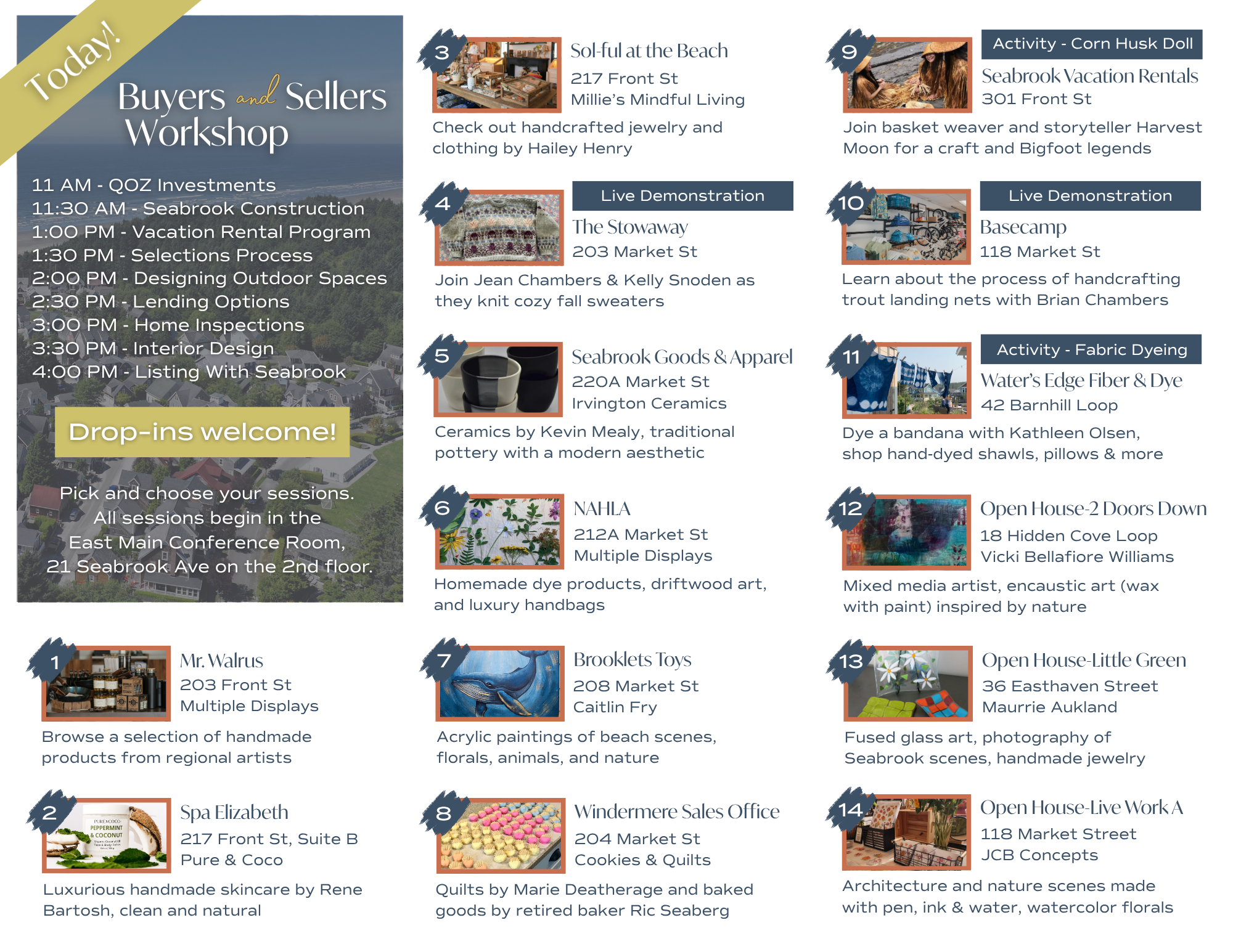 Also happening this weekend: The Buyers and Sellers Workshop presented by Windermere Seabrook. If you have any questions about buying in Seabrook, this is the perfect opportunity to learn more about it with the experts.