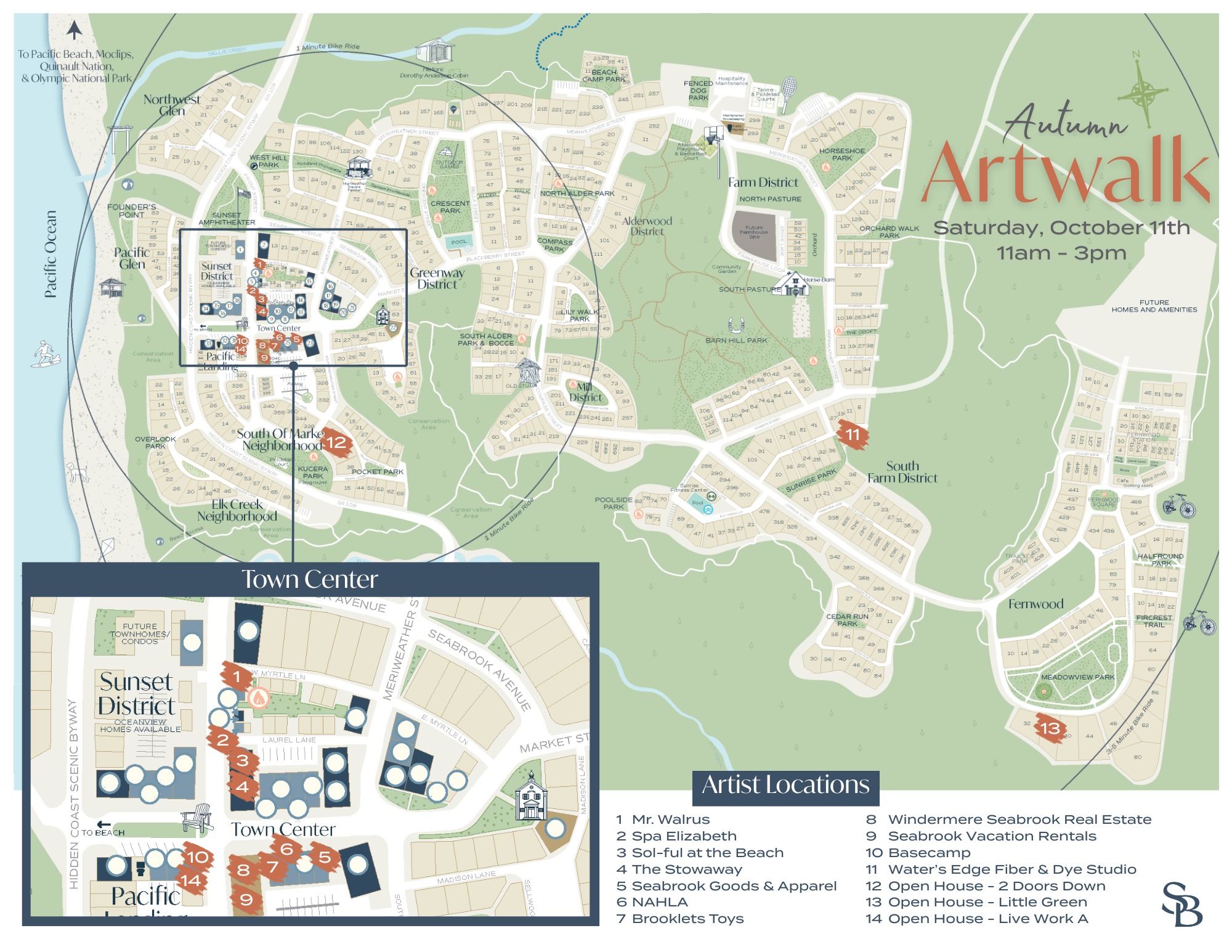 Stop by the Windermere Seabrook Real Estate office or the Seabrook Hospitality lobby on the day of the artwalk to pick up a map of artist locations.