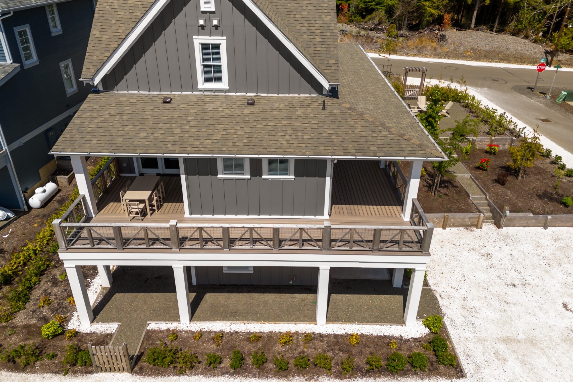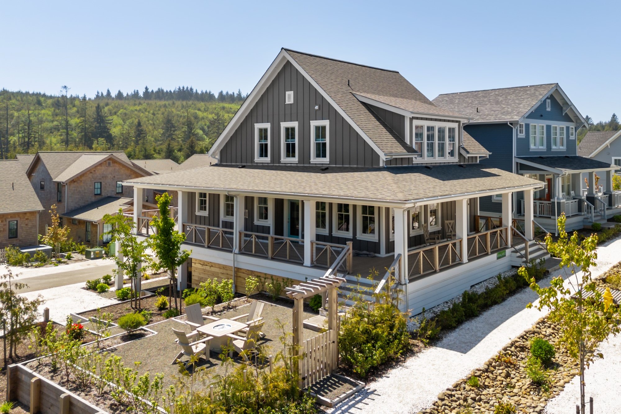 Welcome to The Laurelhurst, a spacious five-bedroom home in Seabrook’s desirable South Farm District. Set on an expanded corner lot with refreshed landscaping, the property offers strong curb appeal with a wraparound porch spanning three sides of the home, creating seamless indoor-outdoor living. Inside, the open-concept layout connects the living, dining, and kitchen areas for easy everyday living and entertaining. The kitchen features an oversized island, while the living room is anchored by a gas fireplace. Double glass doors open to the covered porch, with a lower-level patio and private hot tub below. The home includes four bedrooms plus a bunk room and five and a half bathrooms, along with a lower-level media room and dedicated laundry area.