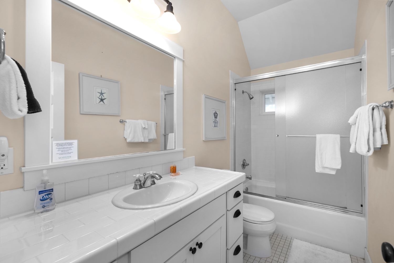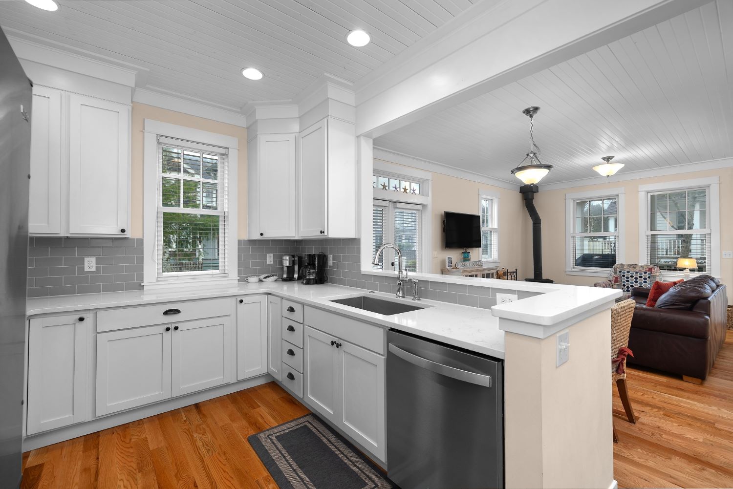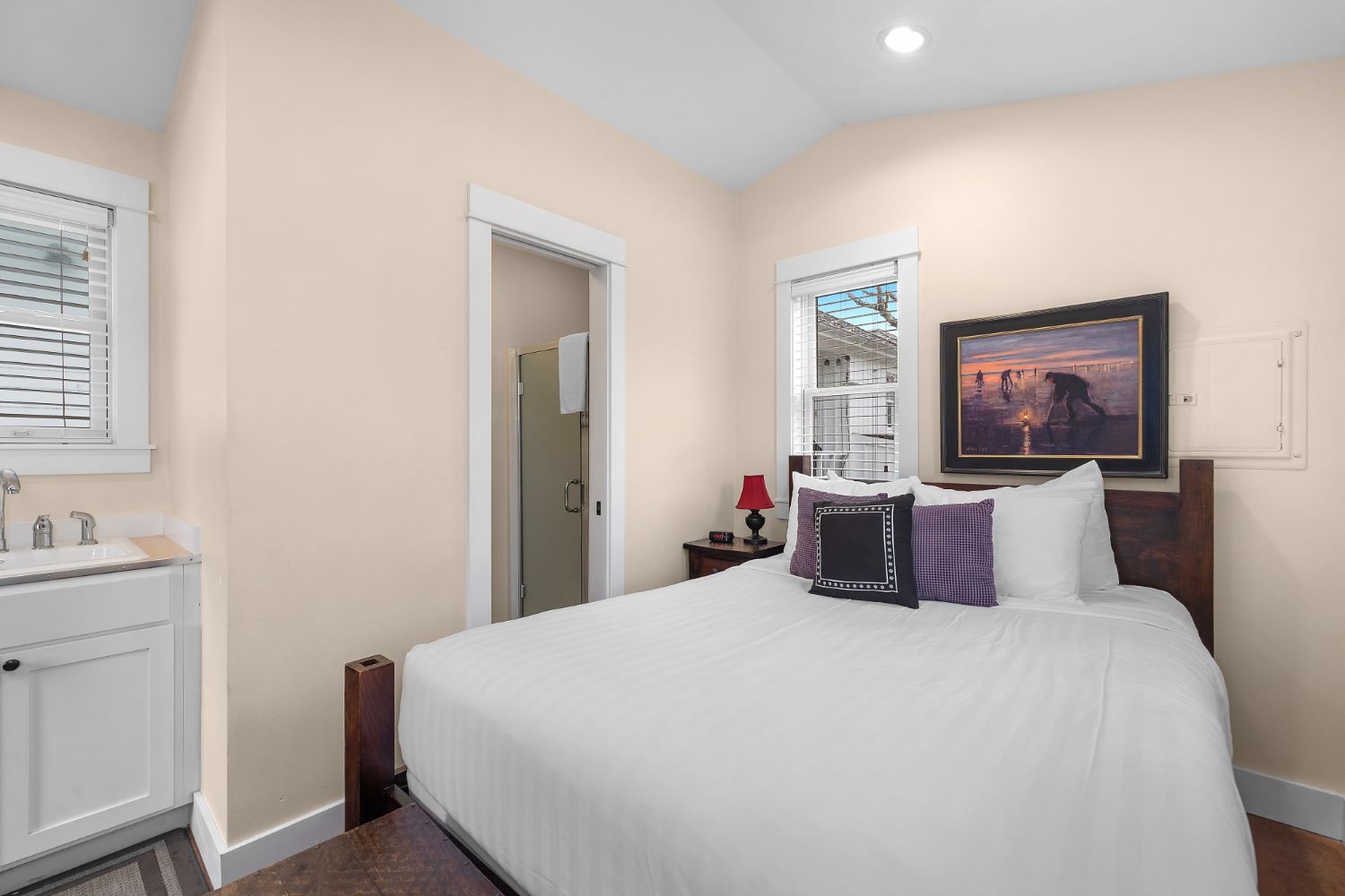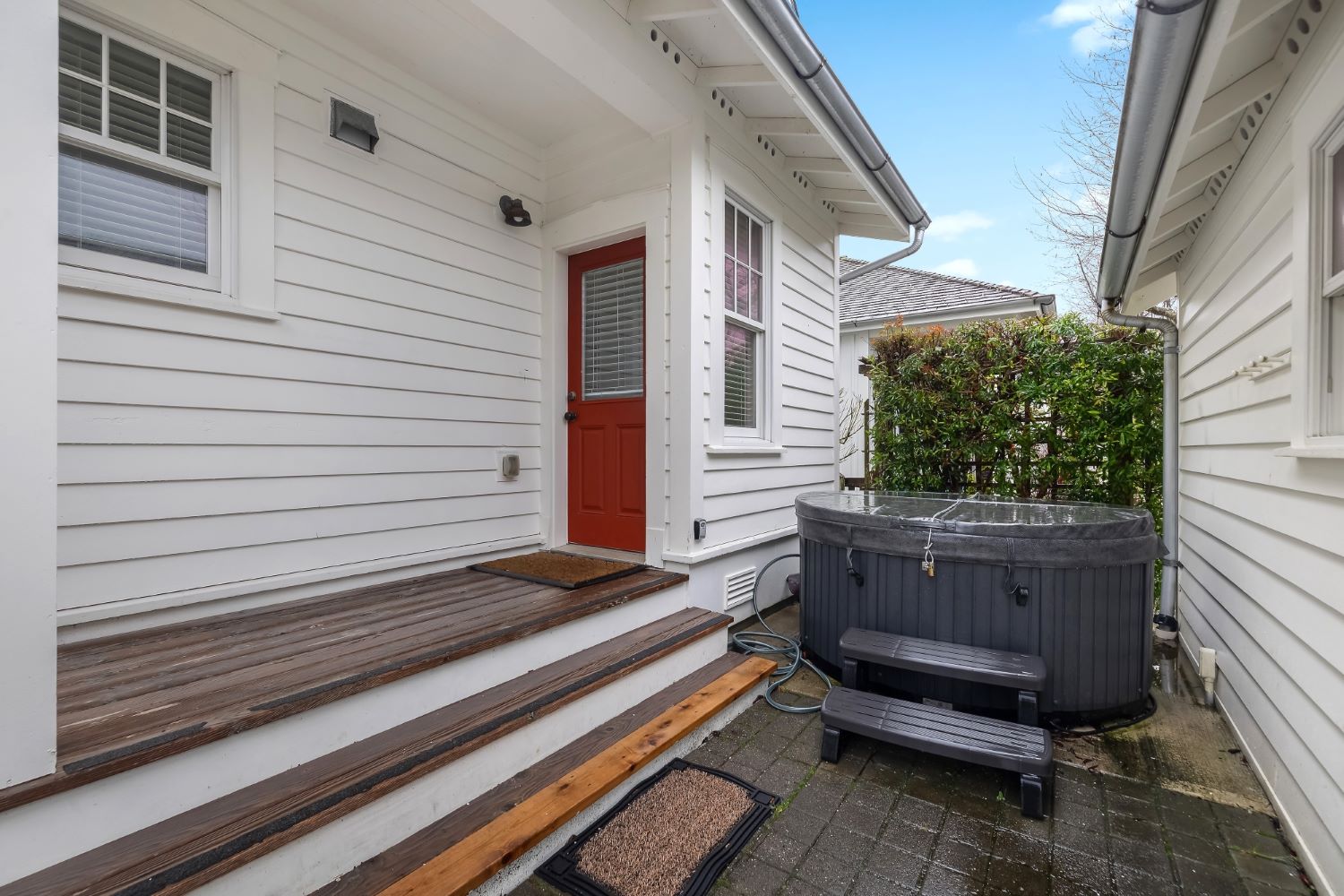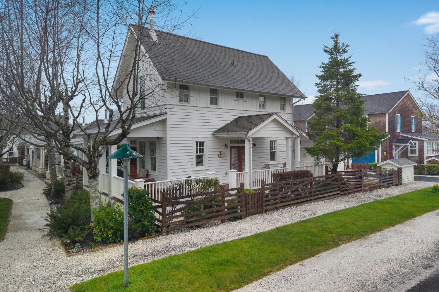 This contemporary classic Cape Cod style Seabrook residence boasts an ideal location on North Alder Park. The main house features a cozy main level complete with a wood-burning fireplace, living room, dining room, kitchen, and a half bathroom. Upstairs, the second level contains two bedrooms, each benefiting from a private en suite bath. A valuable addition to the property is a separate 192 sq. ft. guest suite, which includes a kitchenette and a three-quarter bath. Outdoor living is enhanced by a west facing sun porch, and hot tub. You also have access to the nearby Alderwood Courtyard amenities, such as an outdoor fireplace and recreational facilities. The home offers exceptional walkability, placing parks, shops, and dining within a short 3-minute stroll, with the beach only a 7-minute walk away.