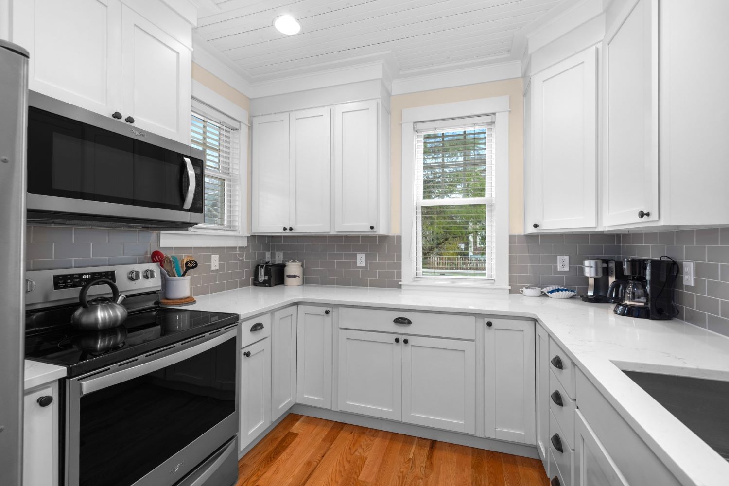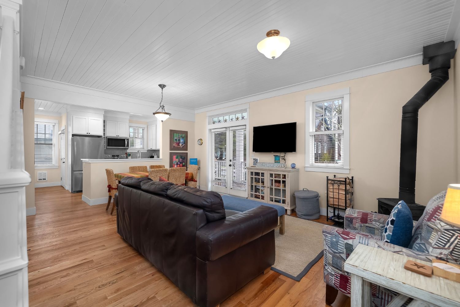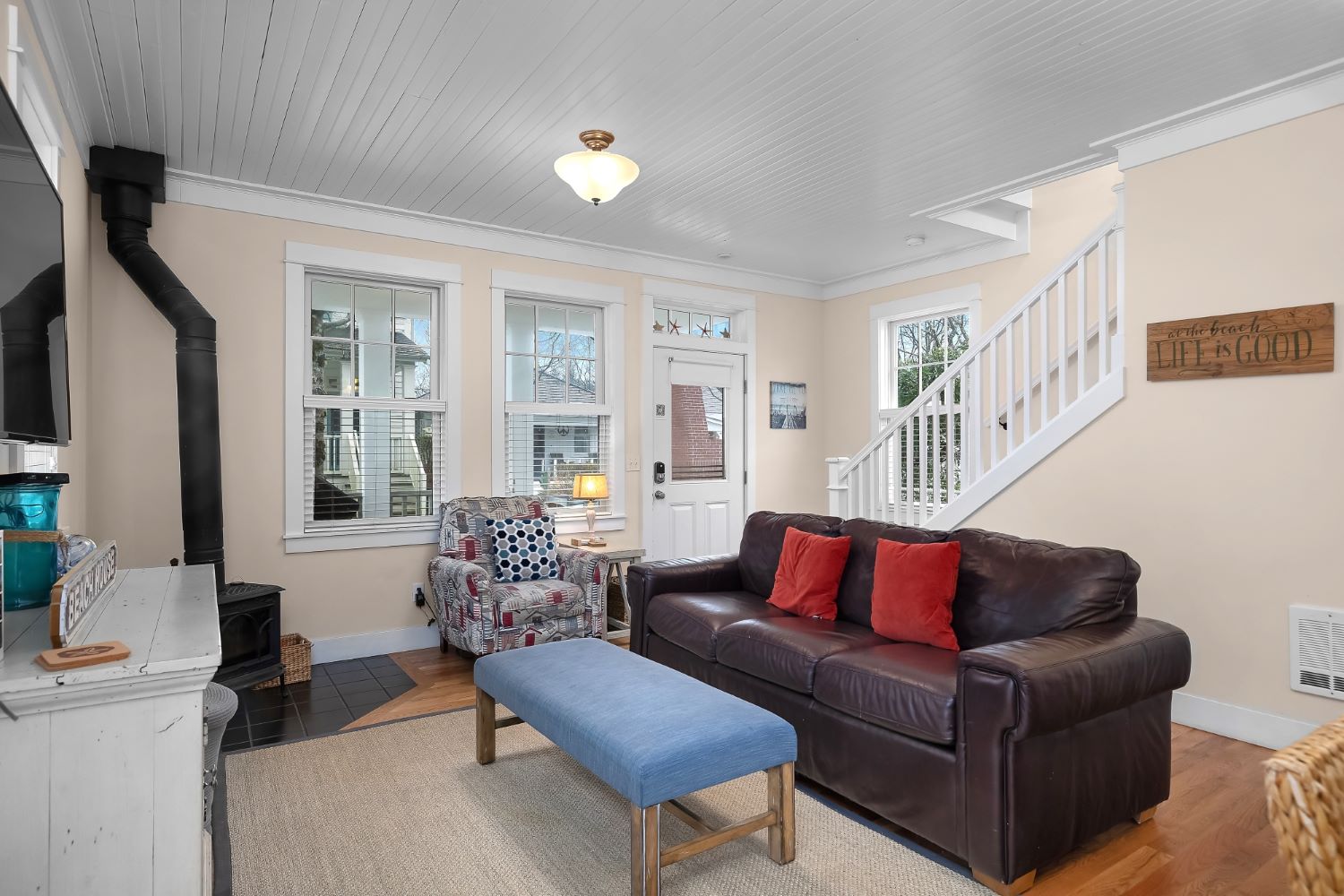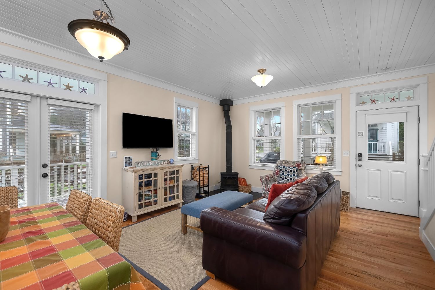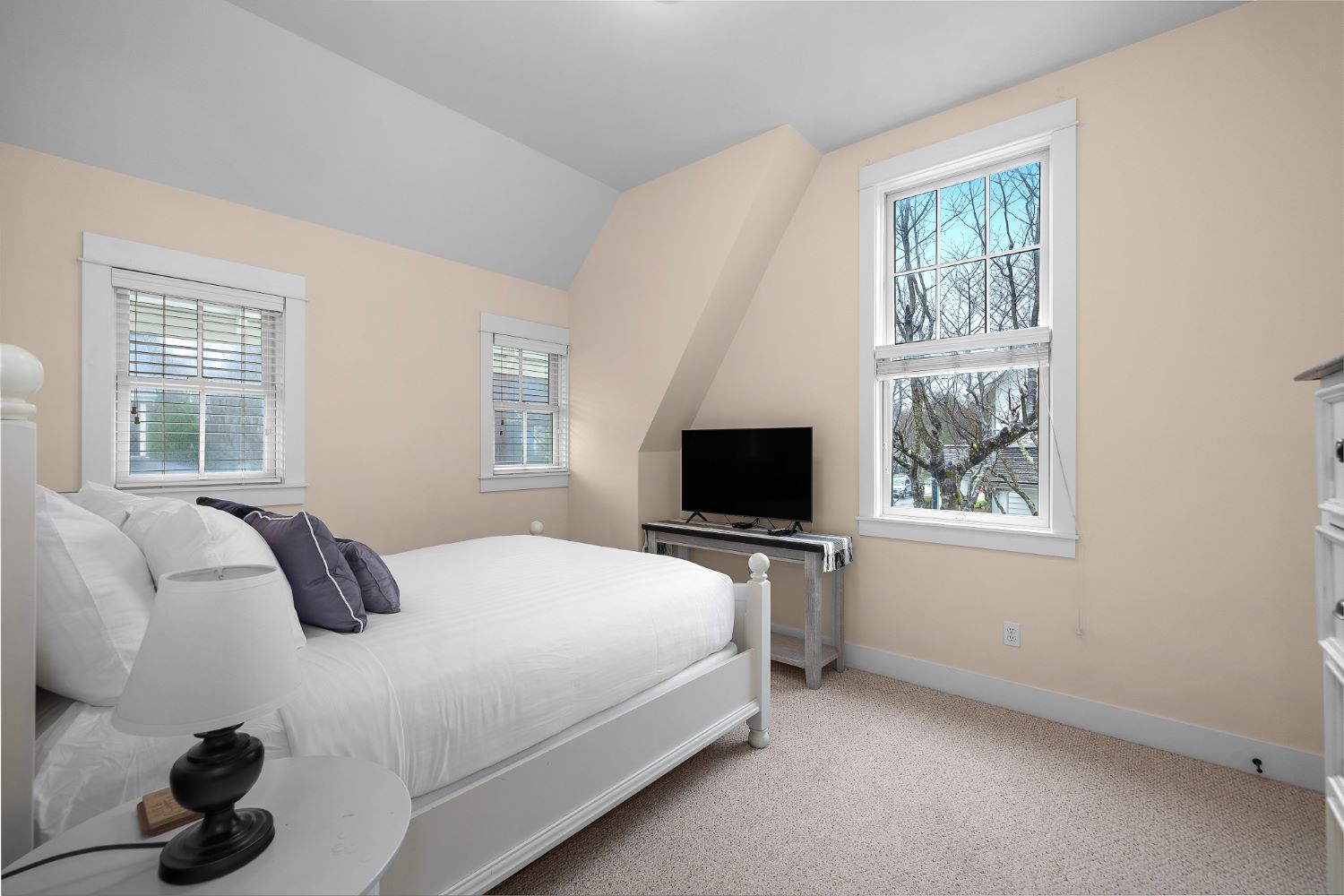 This contemporary classic Cape Cod style Seabrook residence boasts an ideal location on North Alder Park. The main house features a cozy main level complete with a wood-burning fireplace, living room, dining room, kitchen, and a half bathroom. Upstairs, the second level contains two bedrooms, each benefiting from a private en suite bath. A valuable addition to the property is a separate 192 sq. ft. guest suite, which includes a kitchenette and a three-quarter bath. Outdoor living is enhanced by a west facing sun porch, and hot tub. You also have access to the nearby Alderwood Courtyard amenities, such as an outdoor fireplace and recreational facilities. The home offers exceptional walkability, placing parks, shops, and dining within a short 3-minute stroll, with the beach only a 7-minute walk away.