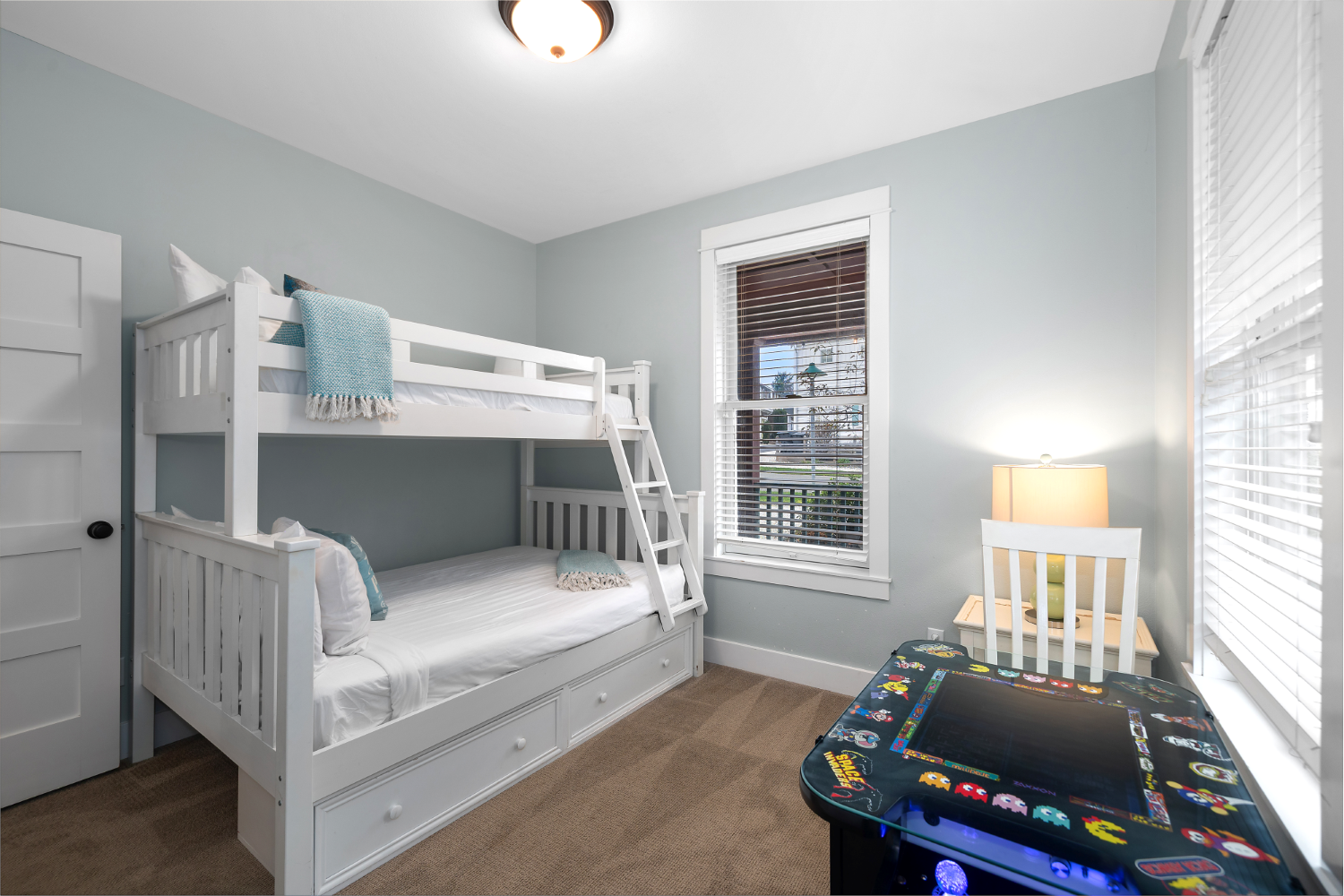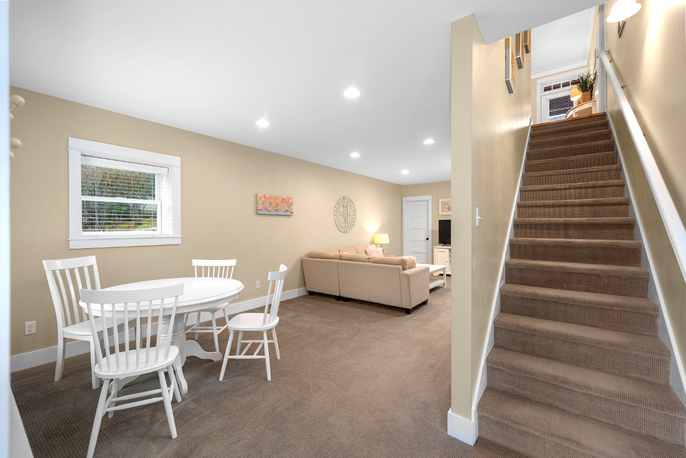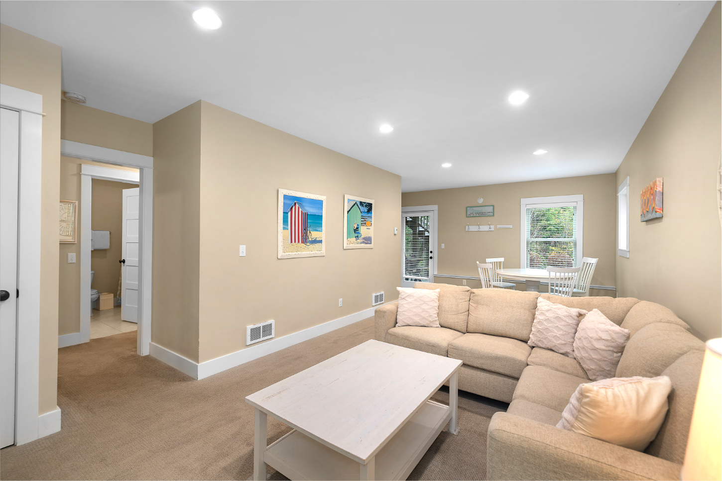 This spectacular 4-bedroom, 3-bath Seabrook home captures the essence of coastal living. Its unique placement makes it one of the most central and private properties in town. Inside, a gourmet kitchen and dining room create a single, bright, open space. The home also includes a large media/rec room and an additional 500 sq ft flex space (on top of the 1,918 sq footage) above the main floor spanning the full length of the house. Step outside to an oversized deck overlooking a quiet natural setting. The forested area behind the home offers walking trails, a large bike shed, and a private fire pit. This beach home is sold fully furnished and has a proven track record as a vacation rental.