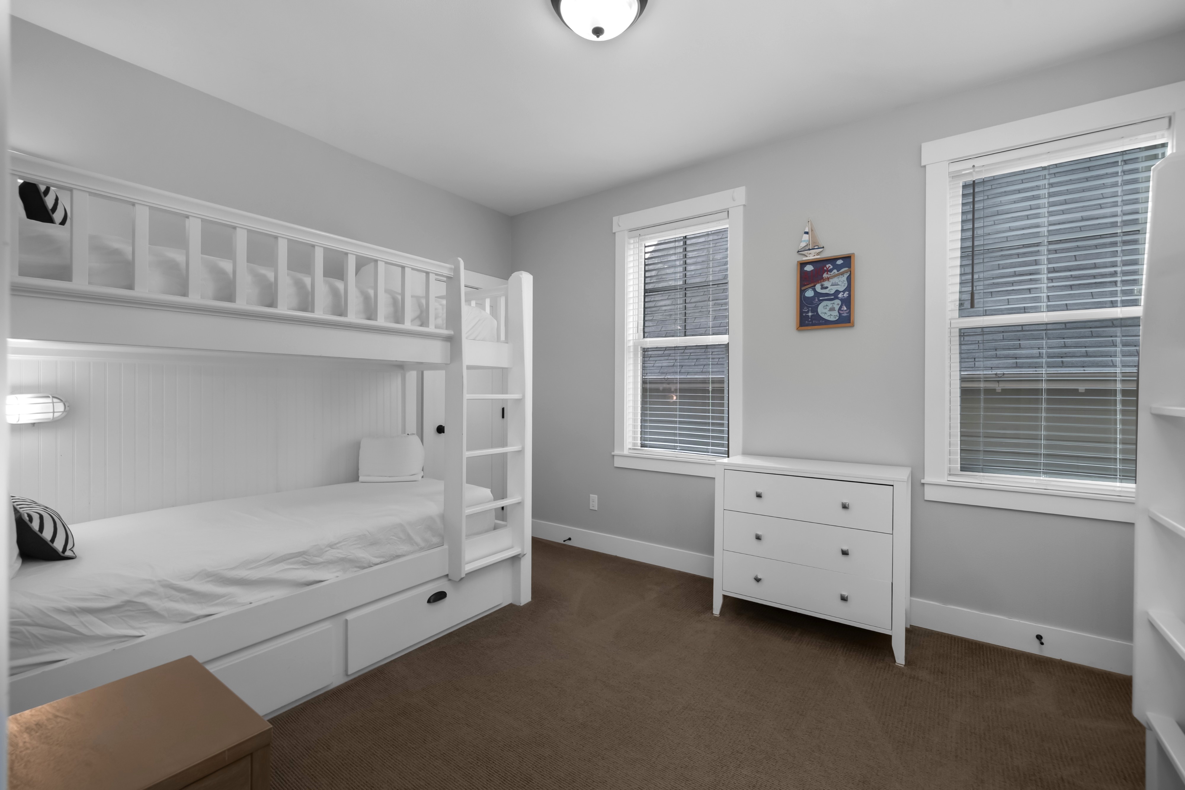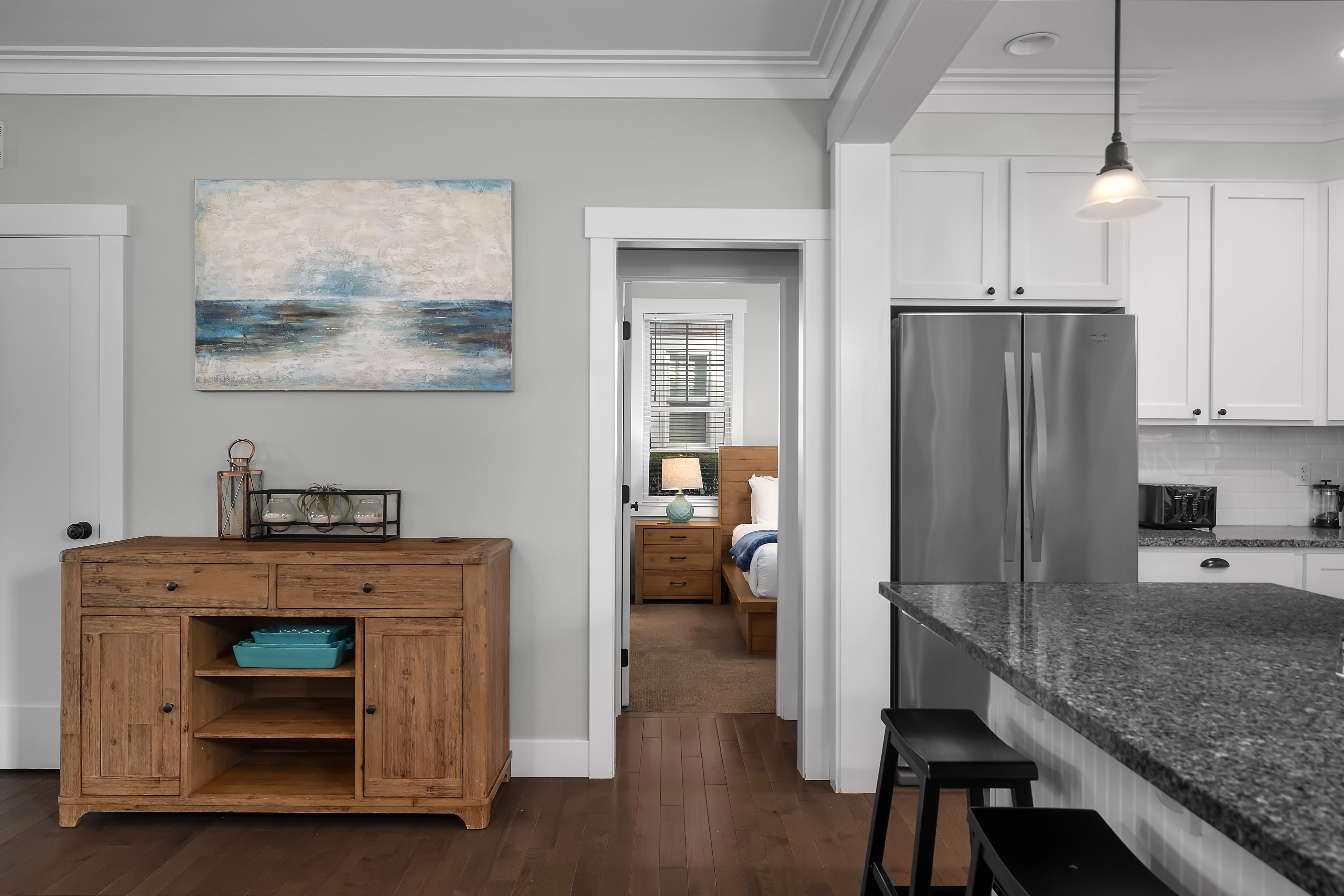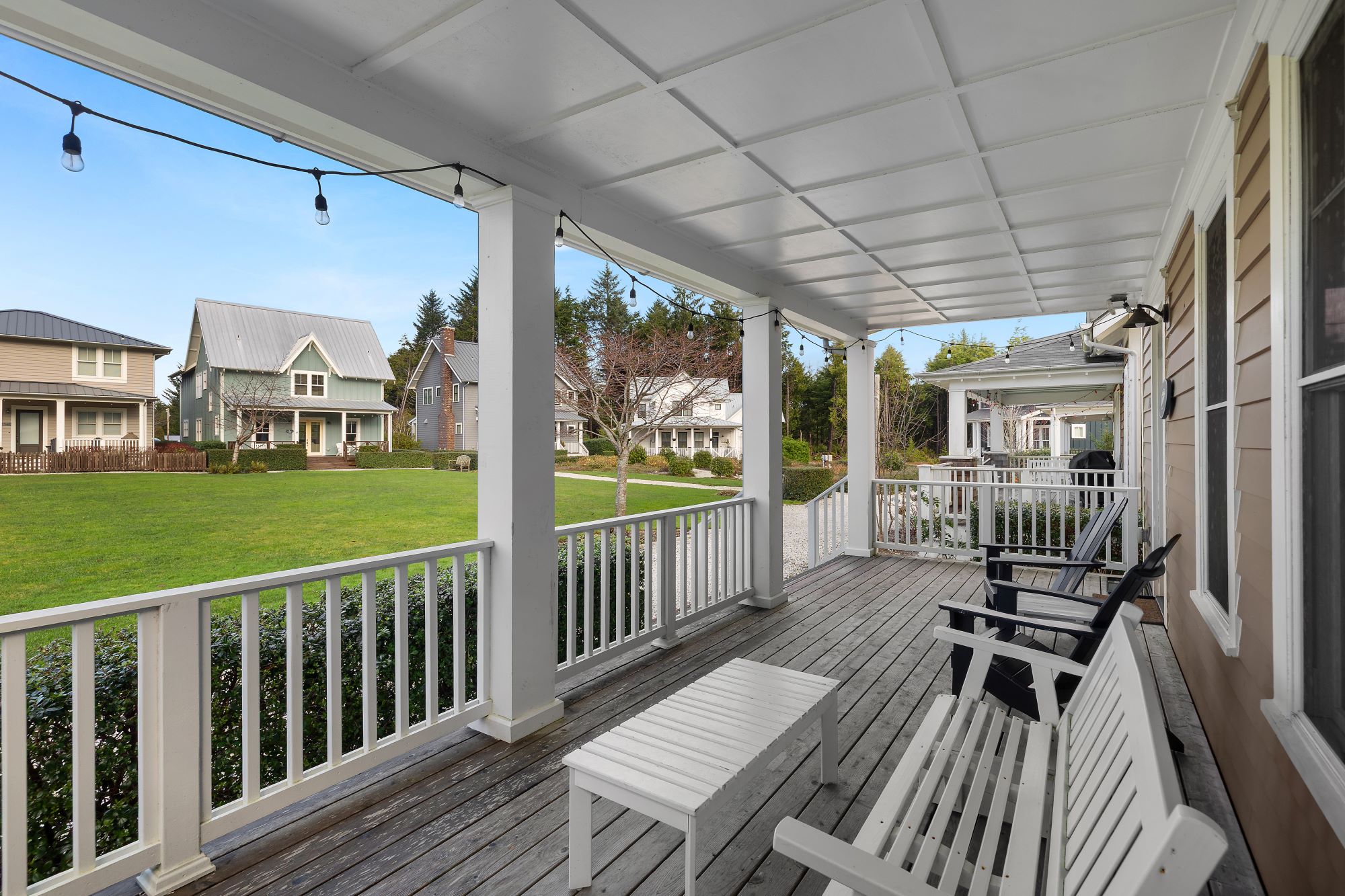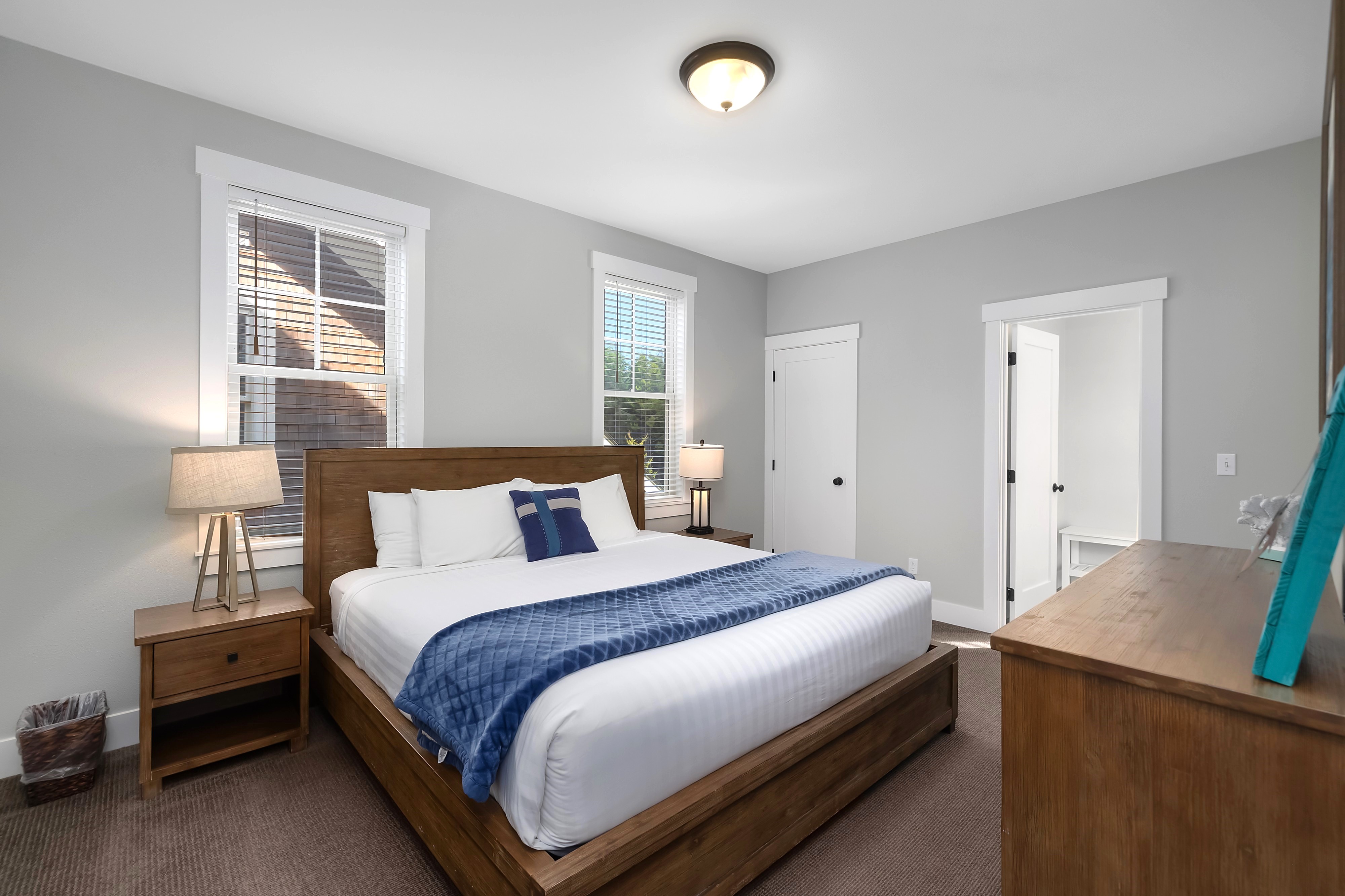Located in the Farm District, overlooking Horseshoe Park, Sandy Tales is within walking distance to everything in Seabrook. This home features three and a half baths, three bedrooms, including two primary suites and a bunk room, all with walk-in closets. An open floor plan connects the kitchen, dining, and living area with a gas fireplace. The upstairs rec room offers a great versatile space. Enjoy private outdoor areas with a hot tub and a large front porch. Located within a five-minute walk to town, enjoy trails, tennis, pool, and the beach. This happy home comes fully furnished and ready to enjoy.