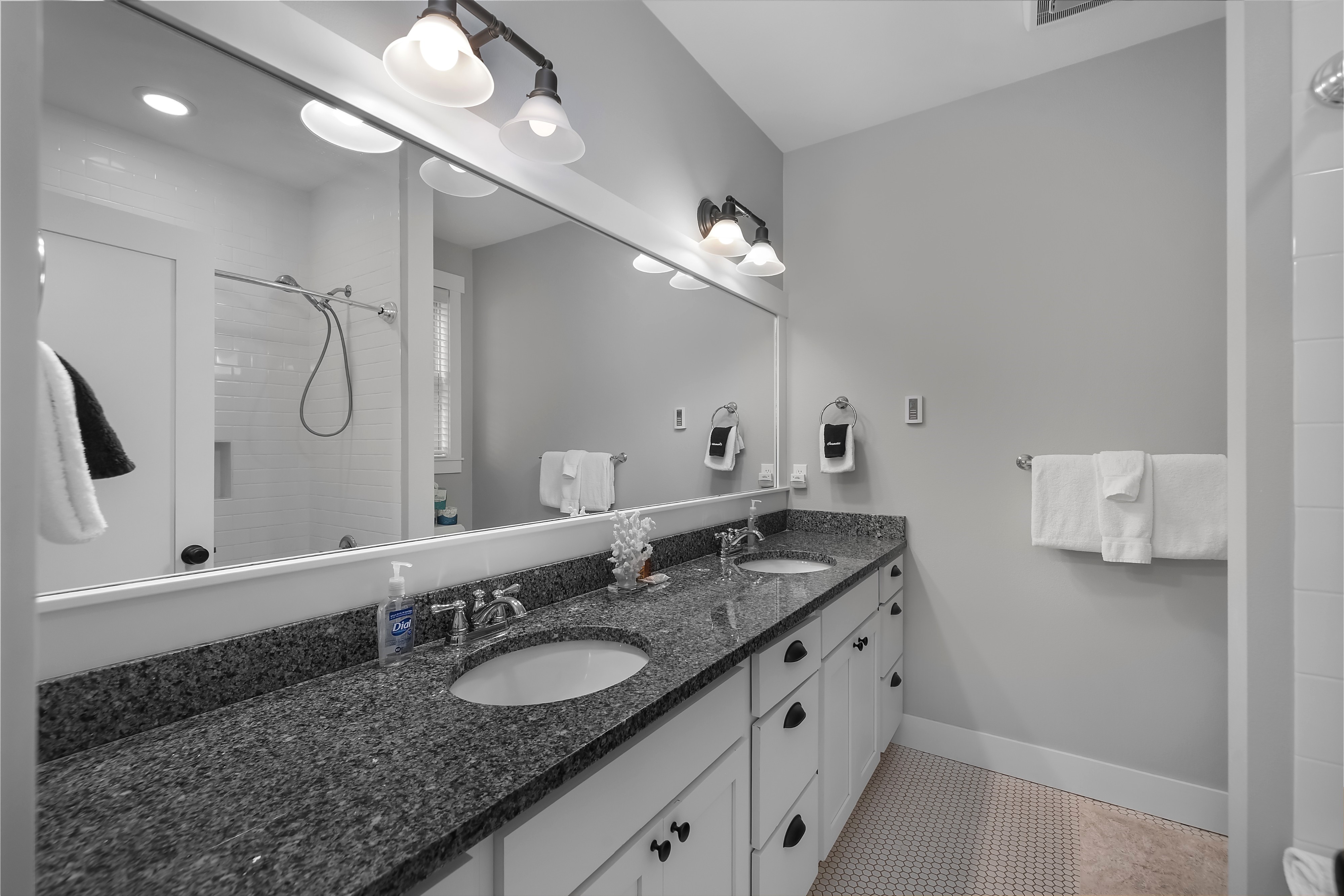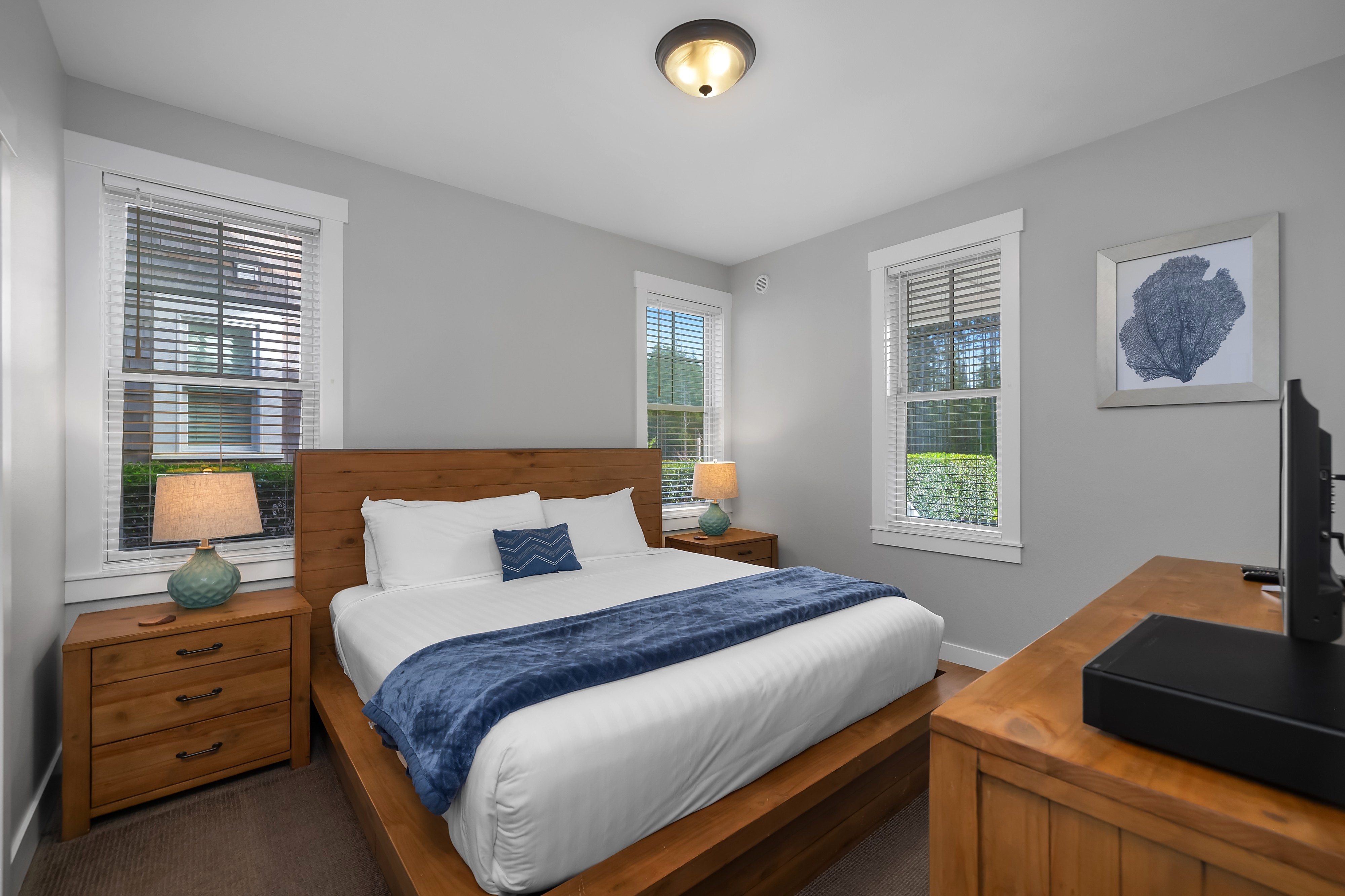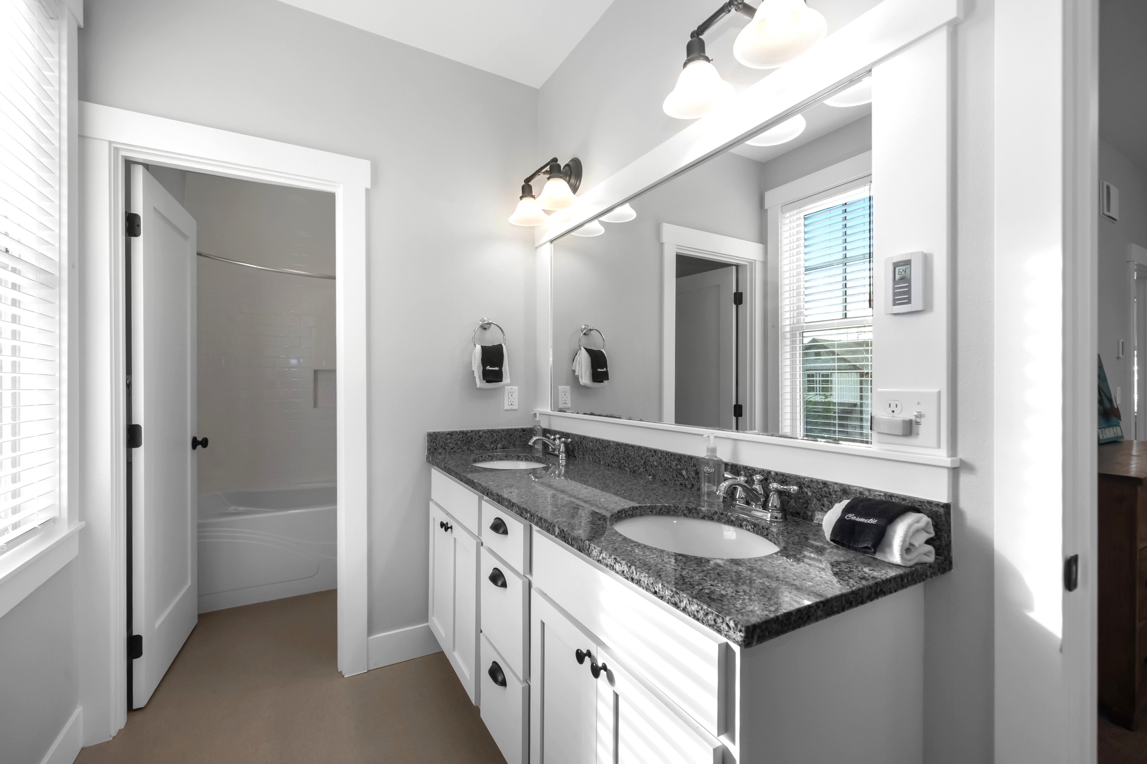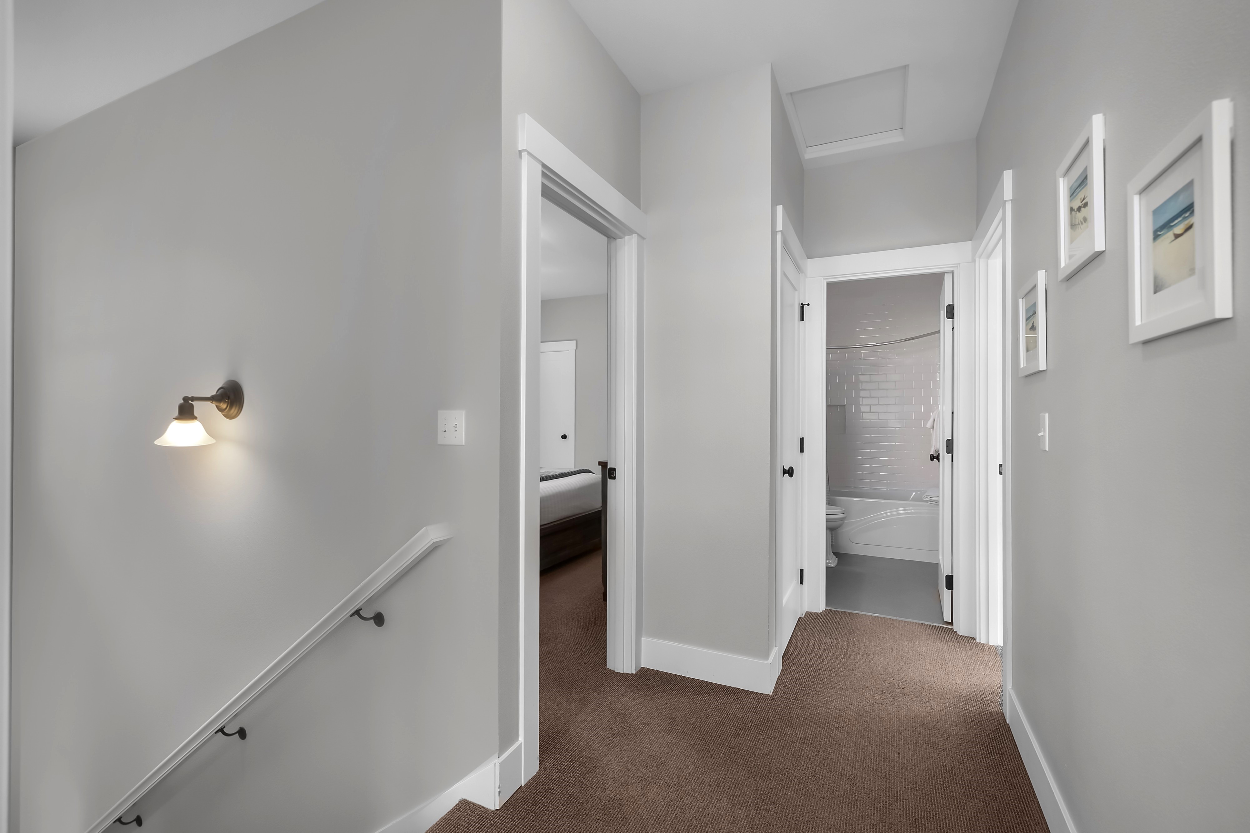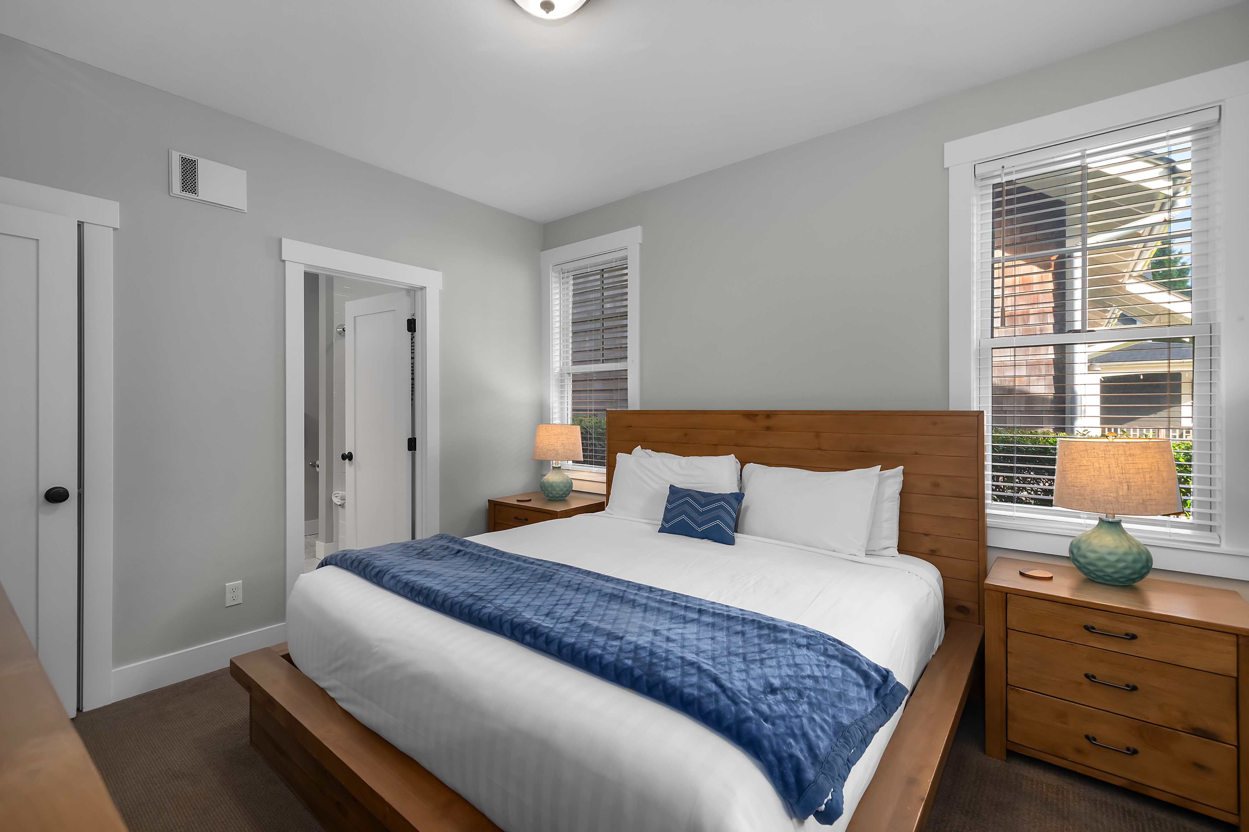 Located in the Farm District, overlooking Horseshoe Park, Sandy Tales is within walking distance to everything in Seabrook. This home features three and a half baths, three bedrooms, including two primary suites and a bunk room, all with walk-in closets. An open floor plan connects the kitchen, dining, and living area with a gas fireplace. The upstairs rec room offers a great versatile space. Enjoy private outdoor areas with a hot tub and a large front porch. Located within a five-minute walk to town, enjoy trails, tennis, pool, and the beach. This happy home comes fully furnished and ready to enjoy.
