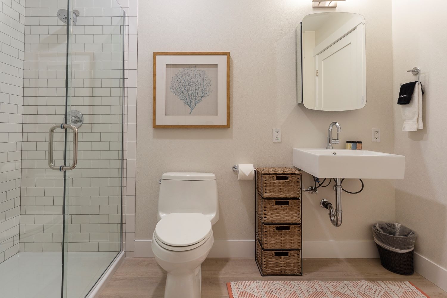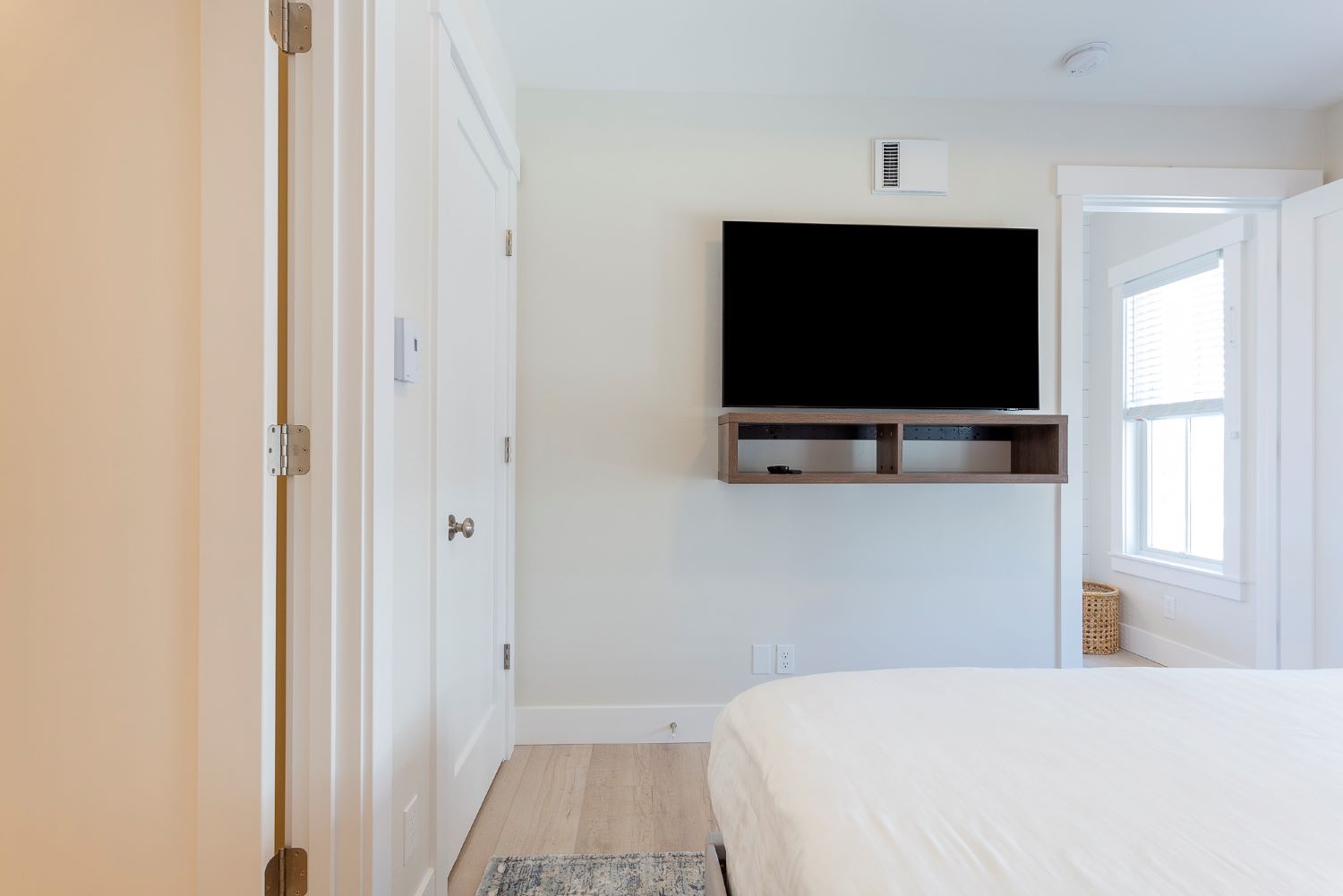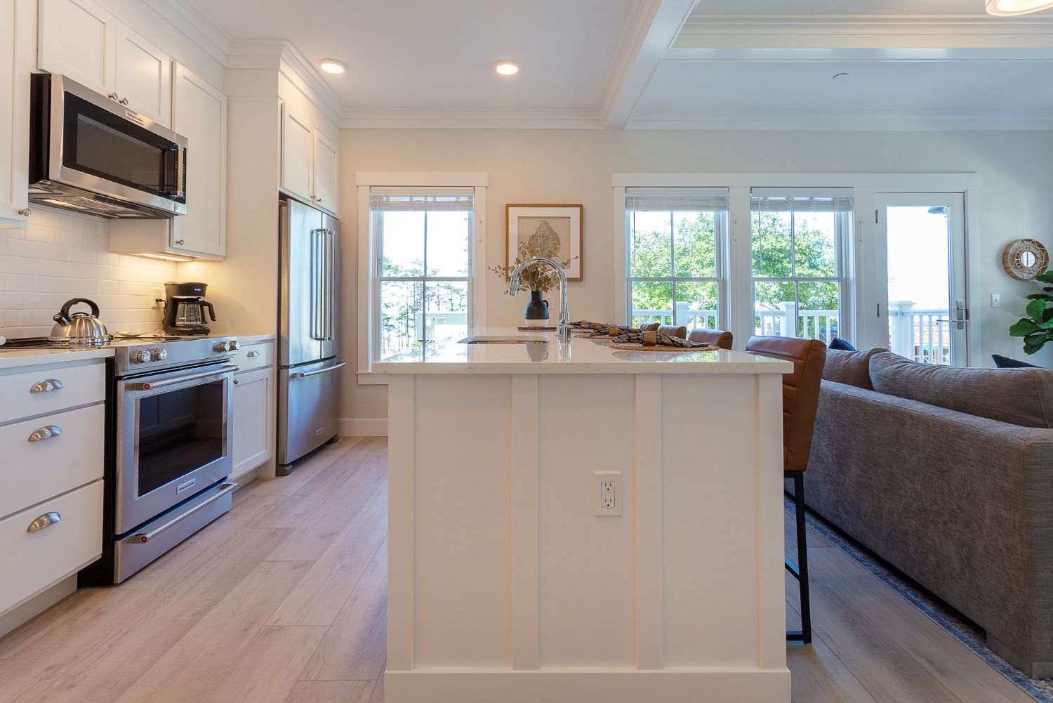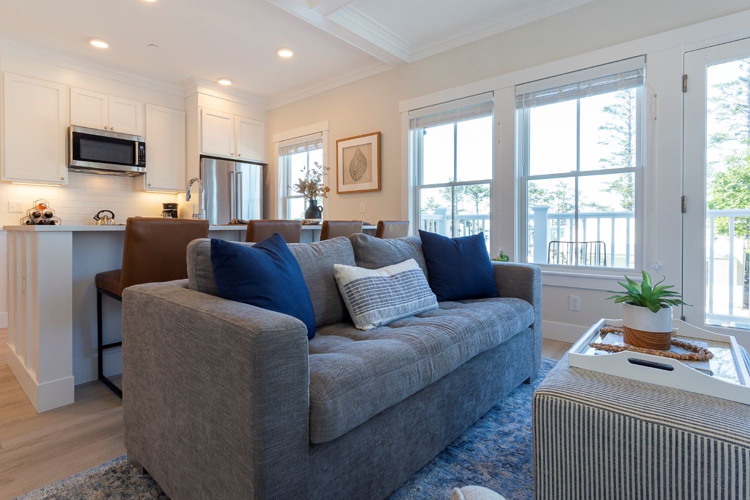 Experience the bright, airy ambiance of "At Last," a peaceful North Market Street Loft where abundant natural light meets warm, beachy tones and décor. Perfectly situated in Seabrook’s vibrant Town Center, you are just steps from all of Seabrook’s restaurants and retail spaces. The open-concept kitchen and living spaces are lined with an almost continuous wall of West-facing windows, offering beautiful views framed by distant Spruce trees and vibrant Alder trees and greenery across the street. Just off the living room, a deck offers an ideal spot to relax. The primary bedroom features a comfortable king bed. The Jack-and-Jill ensuite bathroom features a walk-in shower and offers convenient access from the living room. The North Market Street Lofts have a private elevator and a rooftop patio to enjoy. The condo is also conveniently located a short walk from the beach, perfect for an afternoon of beachcombing, reading, or strolling in the surf.