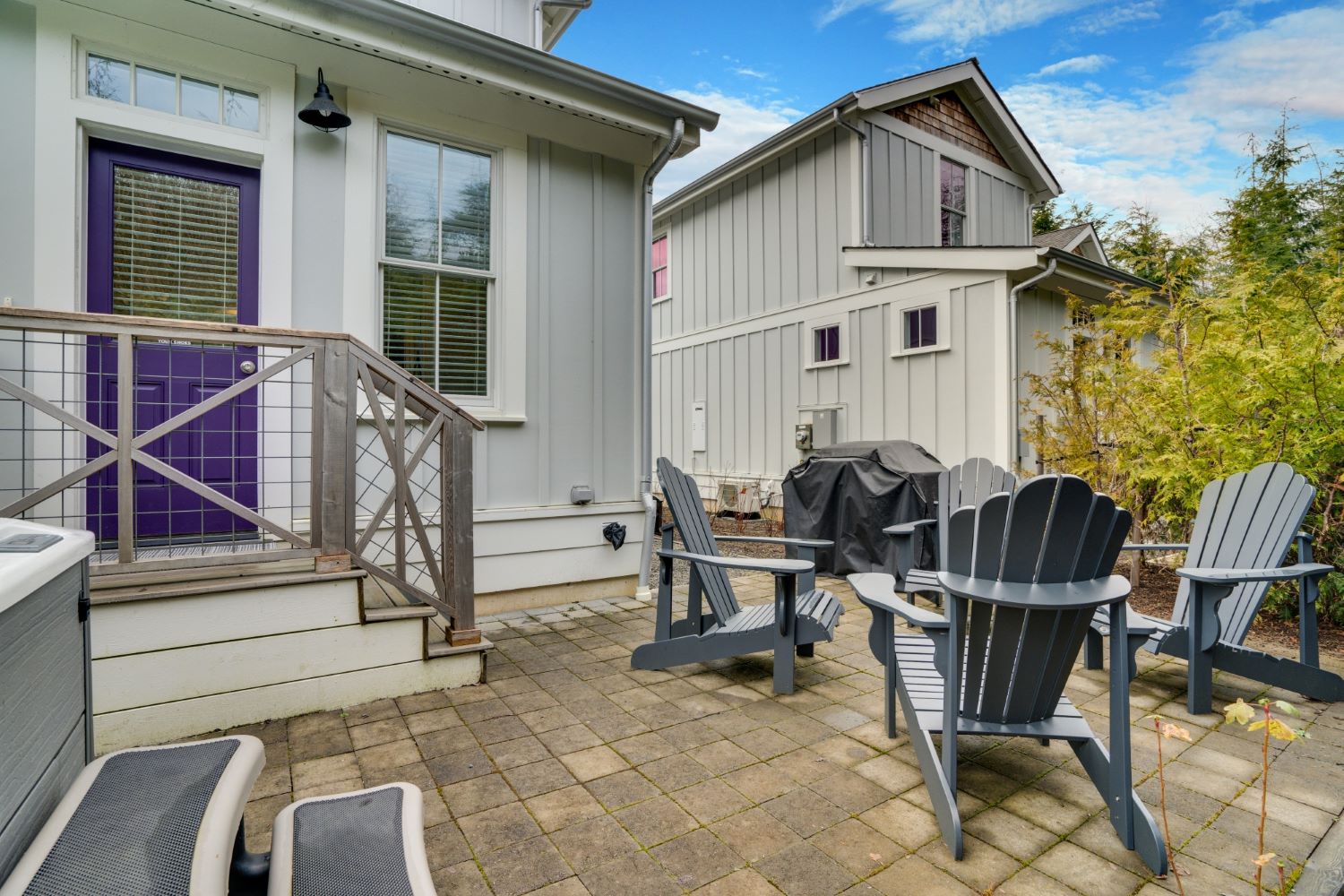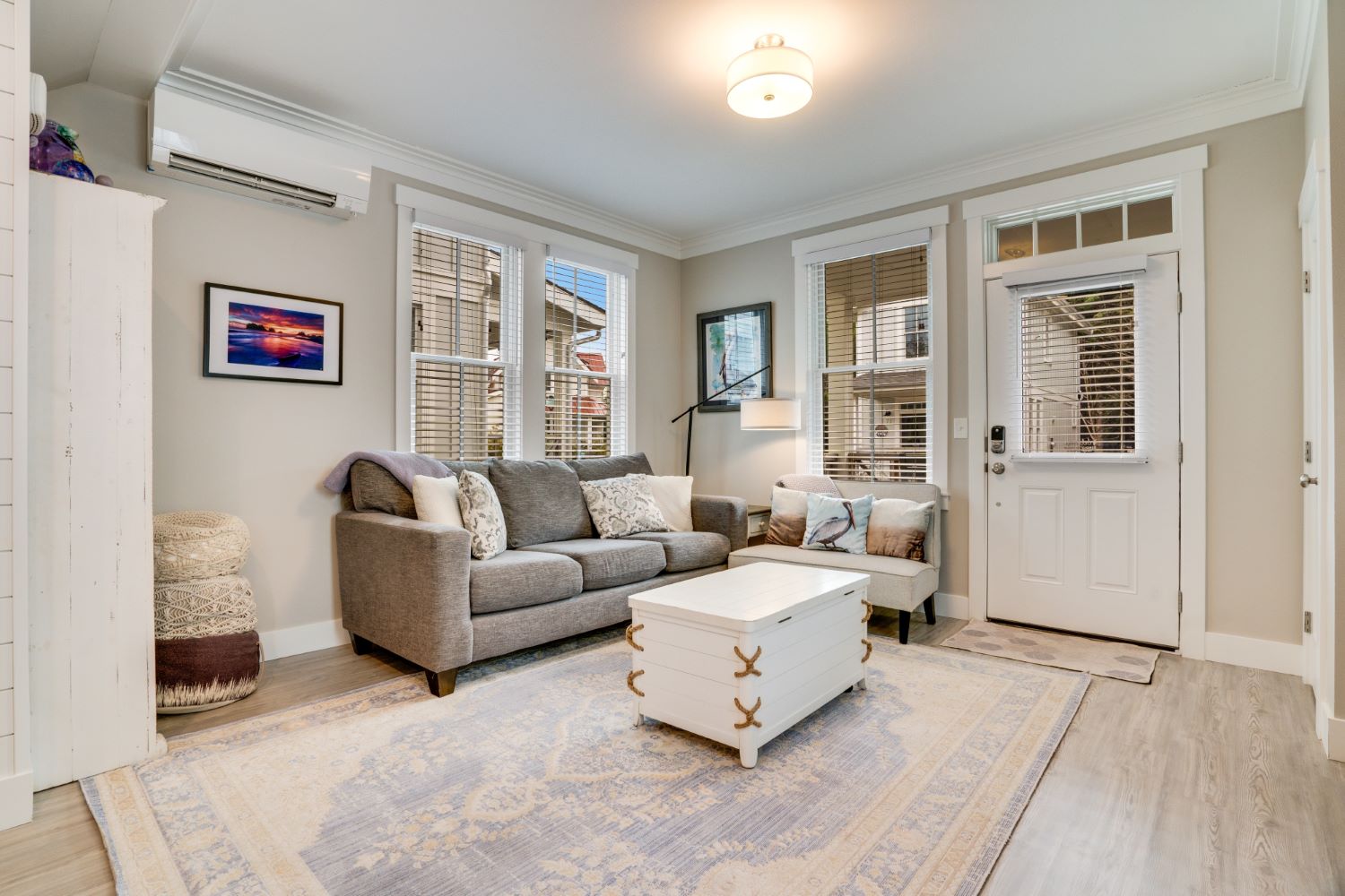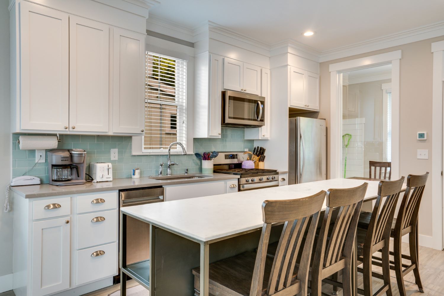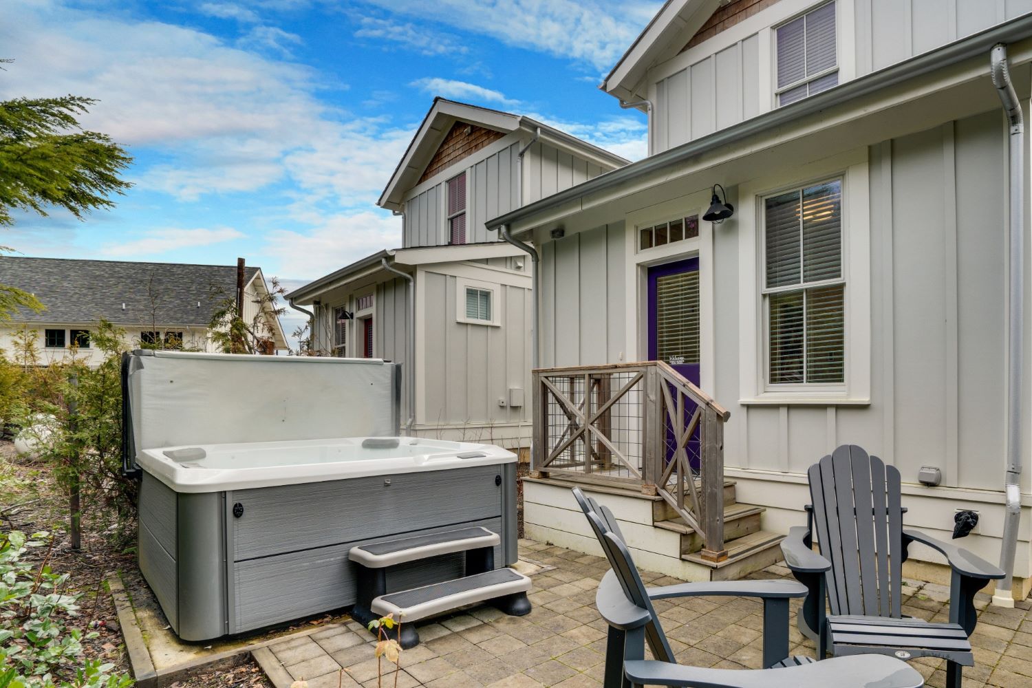 Welcome to Purple Pelican Paradise, a beautifully curated retreat designed for effortless coastal living in the sought-after community of Seabrook. The open-concept main floor features luxury vinyl flooring, a sleek kitchen with stainless steel appliances, and a welcoming living area centered on a cozy fireplace. Don’t miss the bonus/office space off the living area and half bath, too! Upstairs, two generous bedrooms and a full bath offer comfort and privacy, and the dedicated laundry adds convenience. Unwind in your private hot tub or enjoy a leisurely stroll to the Sunrise Pool & Fitness Center. With access to expansive trails, charming shops, and resort‑style amenities, this home blends style, comfort, and the best of beach‑town living.