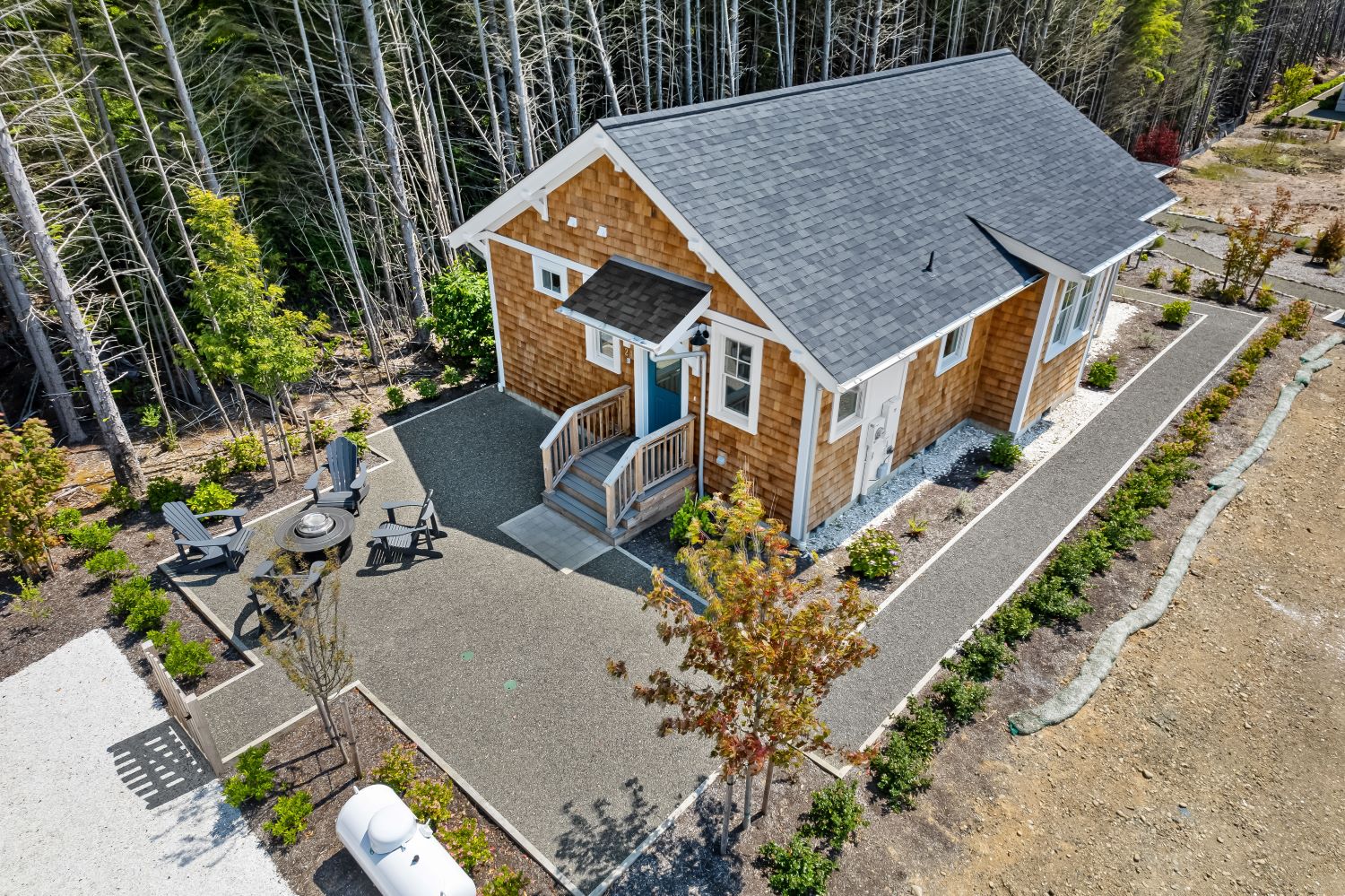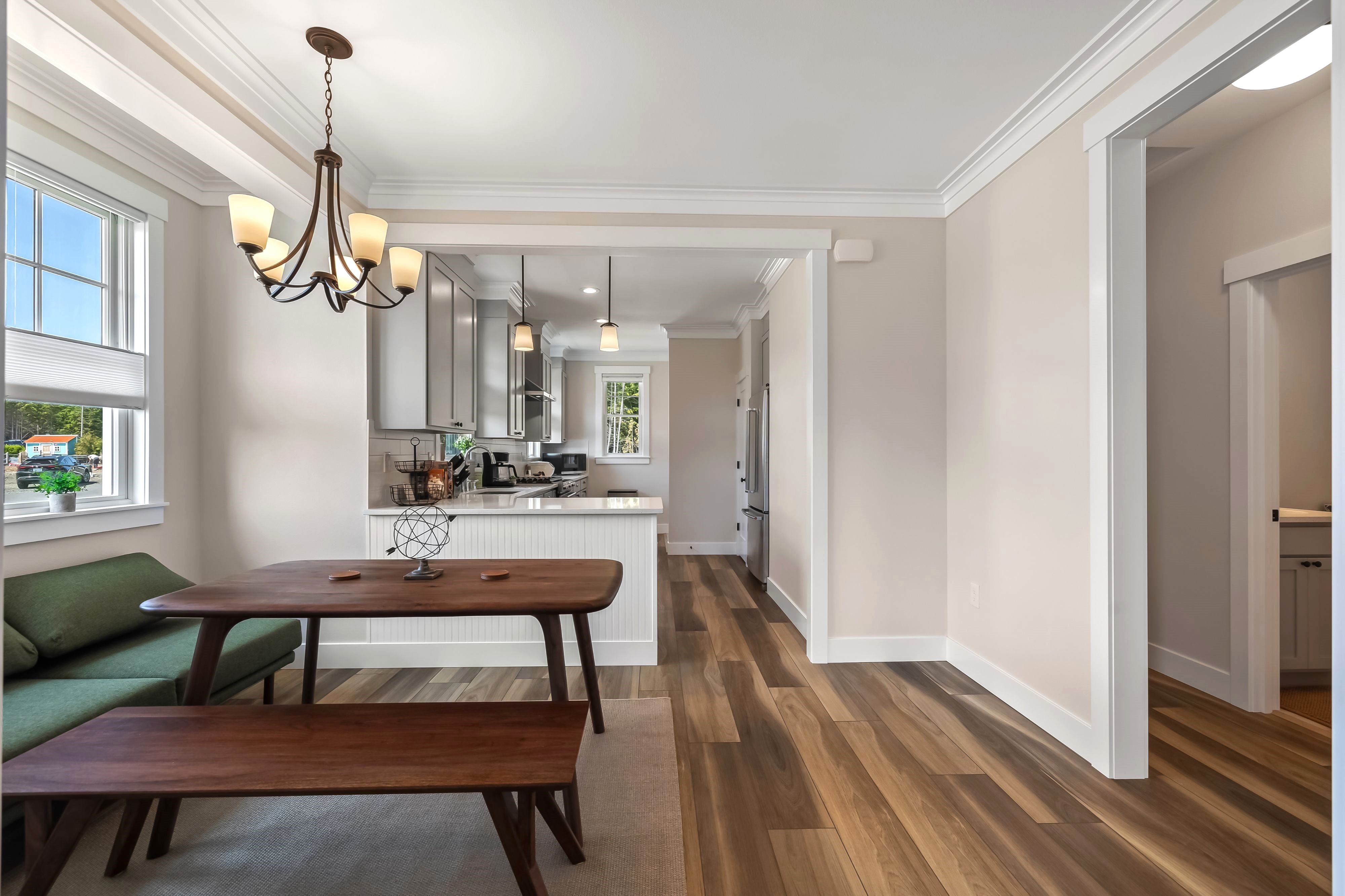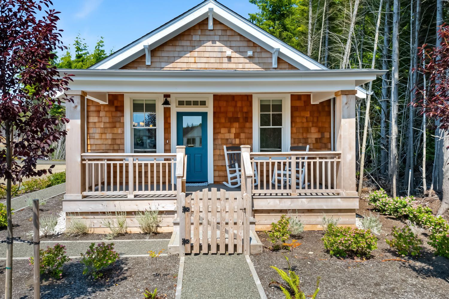 Experience single-floor living with classic coastal charm, in this popular Trillium floor plan, located in Seabrook's Fernwood District. The inviting covered front porch offers a perfect spot to relax. This residence features two bedrooms and two bathrooms, ideal for all generations. The primary bedroom includes a private en-suite bathroom. The second bedroom is versatile, perfect for a guest room or a dedicated home office. The interior's open-concept design seamlessly connects the living, dining, and kitchen areas. A convenient mudroom, and back porch provides direct access to the outdoors, putting you steps away from mountain bike trails, Meadowview Park, and Fernwood Station. Sold fully furnished.