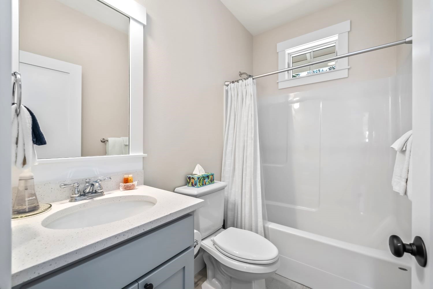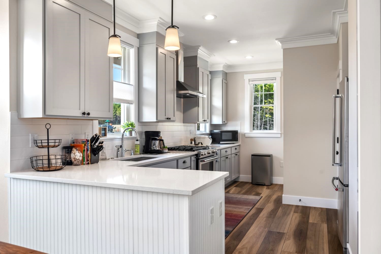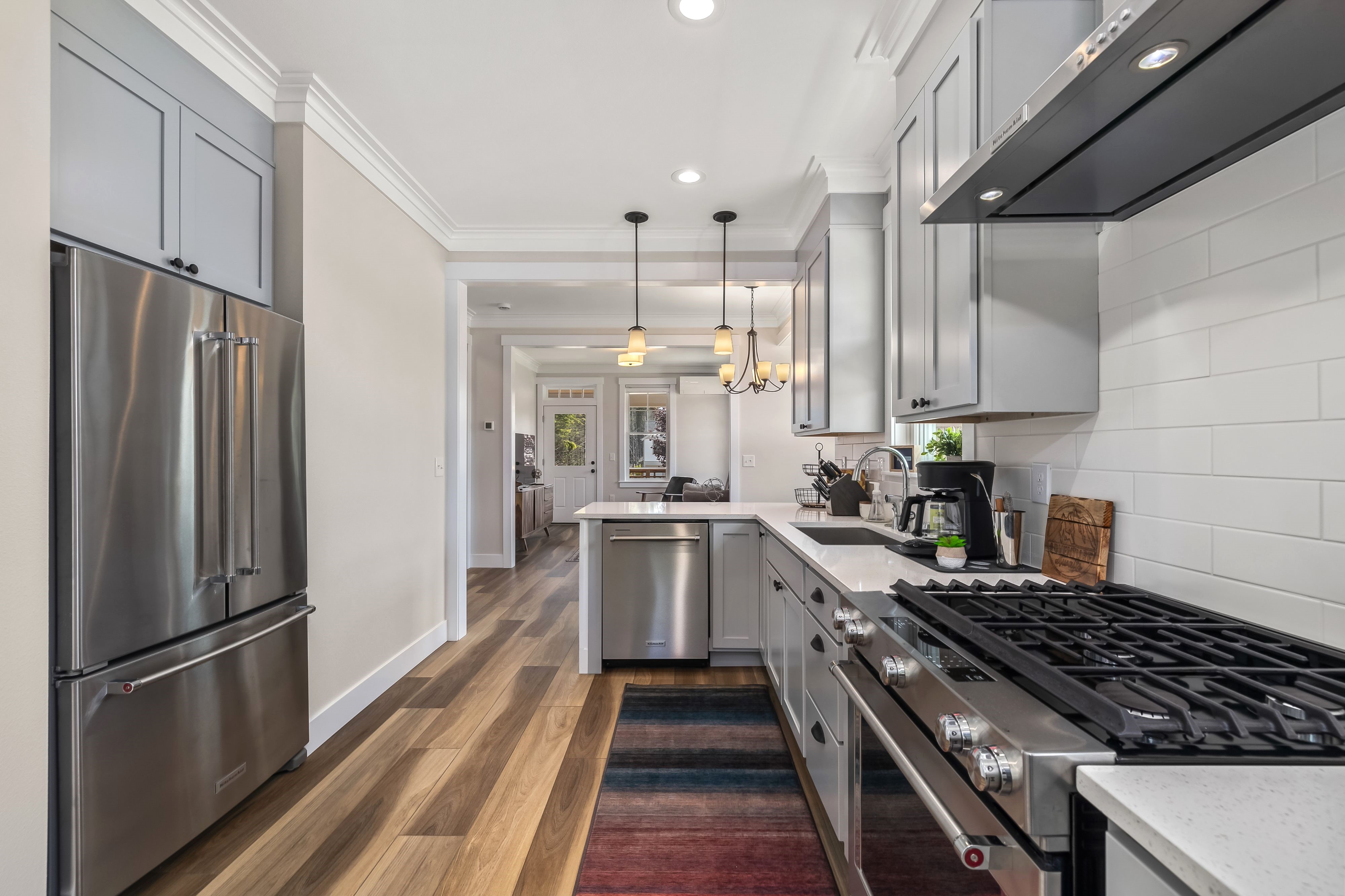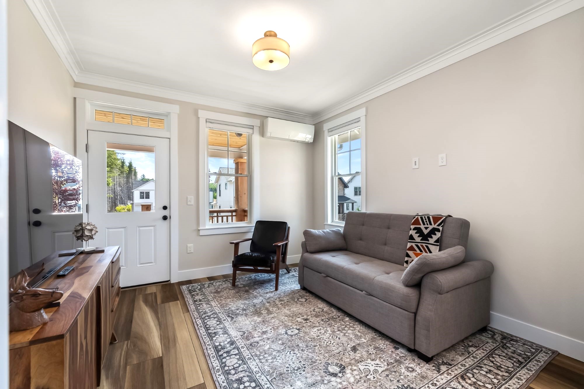 Experience single-floor living with classic coastal charm, in this popular Trillium floor plan, located in Seabrook's Fernwood District. The inviting covered front porch offers a perfect spot to relax. This residence features two bedrooms and two bathrooms, ideal for all generations. The primary bedroom includes a private en-suite bathroom. The second bedroom is versatile, perfect for a guest room or a dedicated home office. The interior's open-concept design seamlessly connects the living, dining, and kitchen areas. A convenient mudroom, and back porch provides direct access to the outdoors, putting you steps away from mountain bike trails, Meadowview Park, and Fernwood Station. Sold fully furnished.
