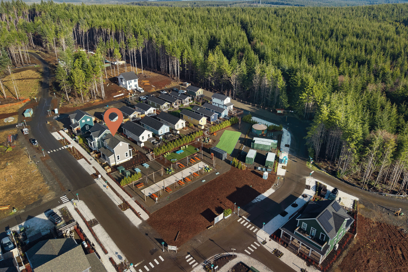 A corner lot within Fernwood Station, The Fern Lily is ideal for taking in quiet mornings before enjoying the trail network steps away. Step inside from the covered front porch into the open concept living and dining area, completed by a half bath. Upstairs hosts a primary bedroom, guest bedroom, and shared bathroom. Enjoy the tranquility of Fernwood and its convenient proximity to town amenities, a short bike ride away.