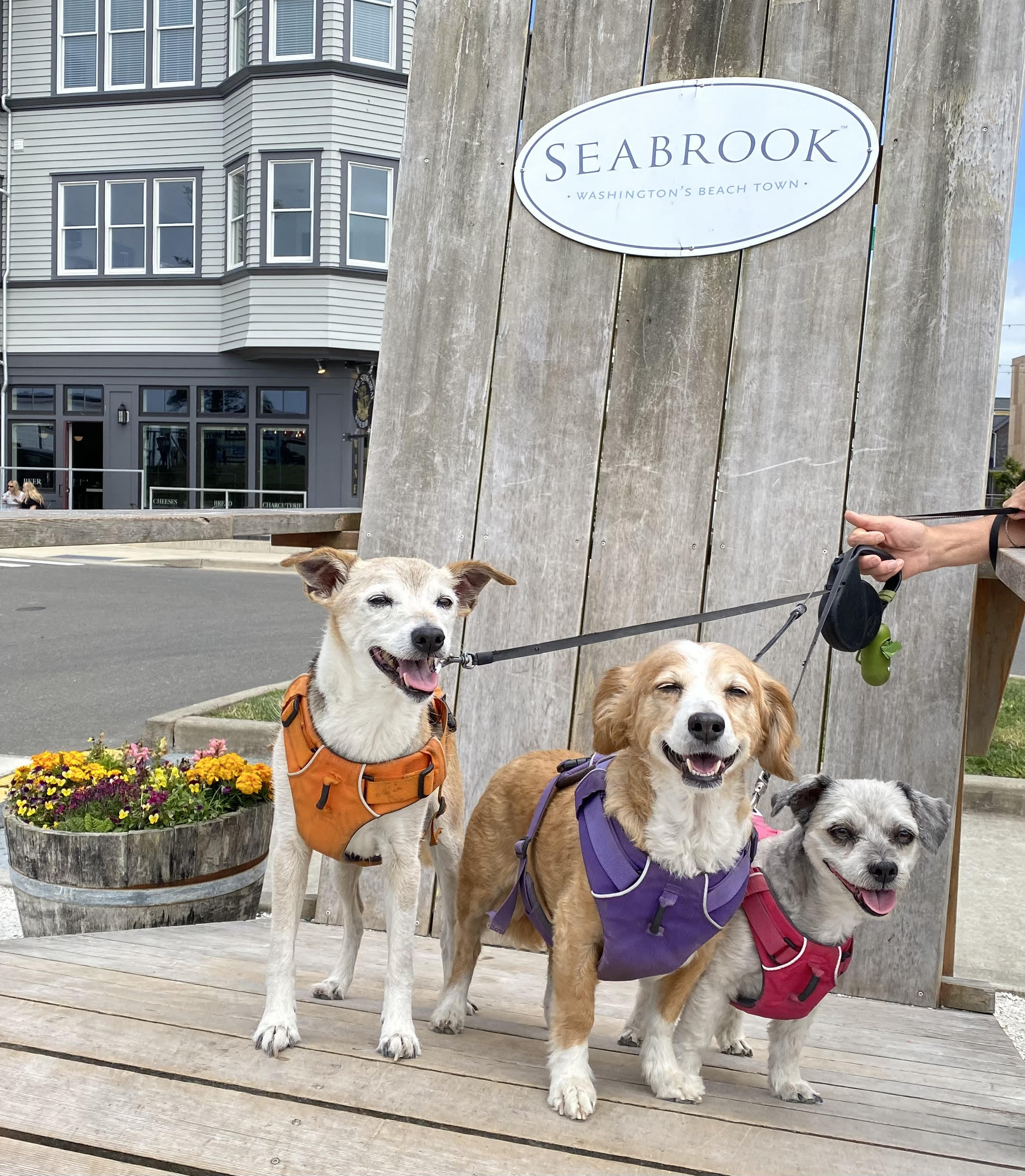 Welcome to Seabrook, all dogs (puppies, seniors, barkers, fluff balls, smooth-haireds, and tail-waggers)! Seabrook is dog-friendly, so please feel at ease exploring, sniffing, and puppy-ing around – even if you’re a senior pup. In fact, Seabrook and The Salty Dog (Seabrook’s dog shop) were featured as the Best Northwest Pet-Friendly Getaway by Seattle’s KING 5 Evening Magazine! And you’re in good company. On a recent weekend, over one hundred (100!) dogs checked in at Seabrook with their humans!